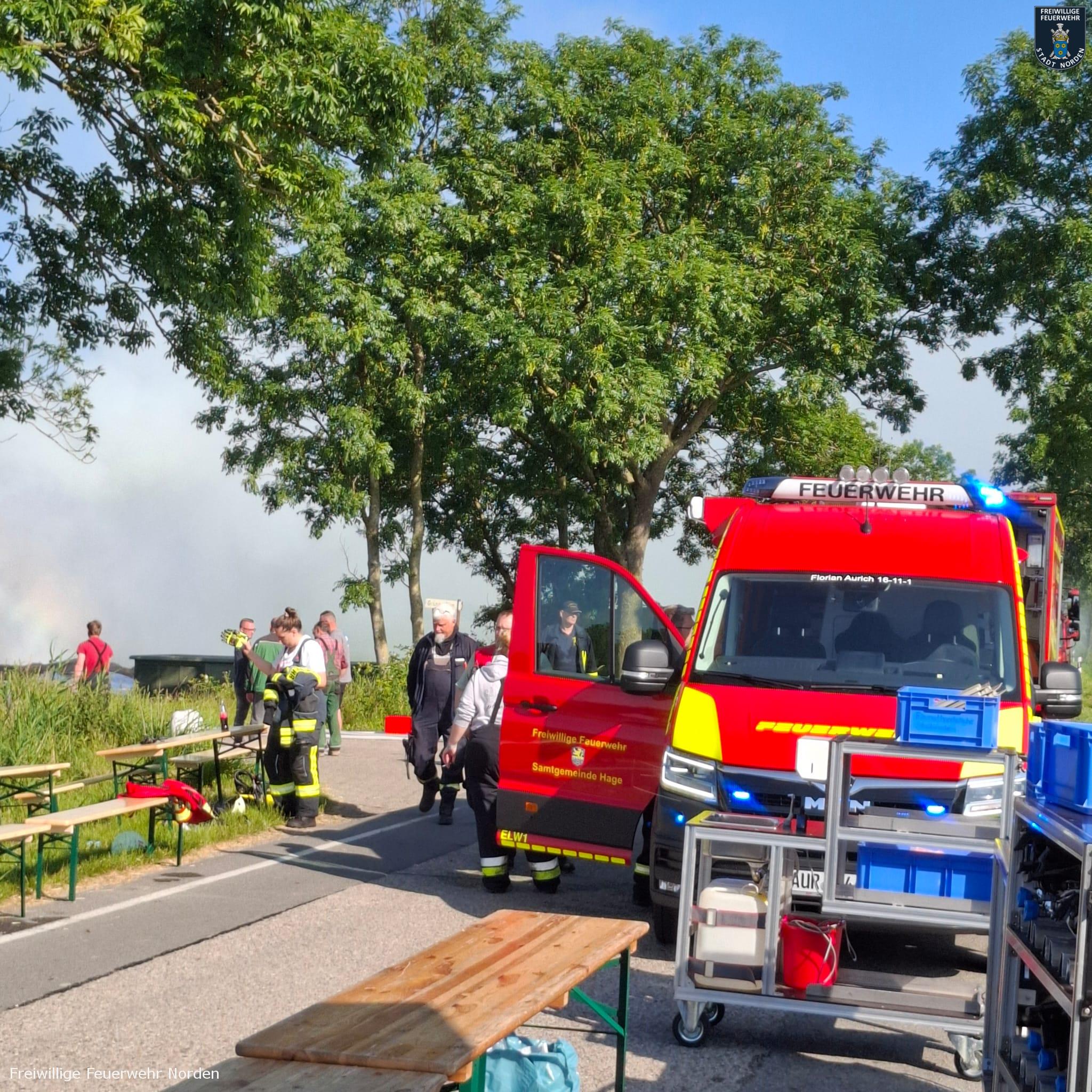 Neben den freiwilligen Feuerwehren der Samtgemeinde Hage, Norden, Nesse und Neßmersiel waren die Bereitschaften des Deutschen Roten Kreuzes Hage-Großheide und Dornum sowie die Polizei im Einsatz.