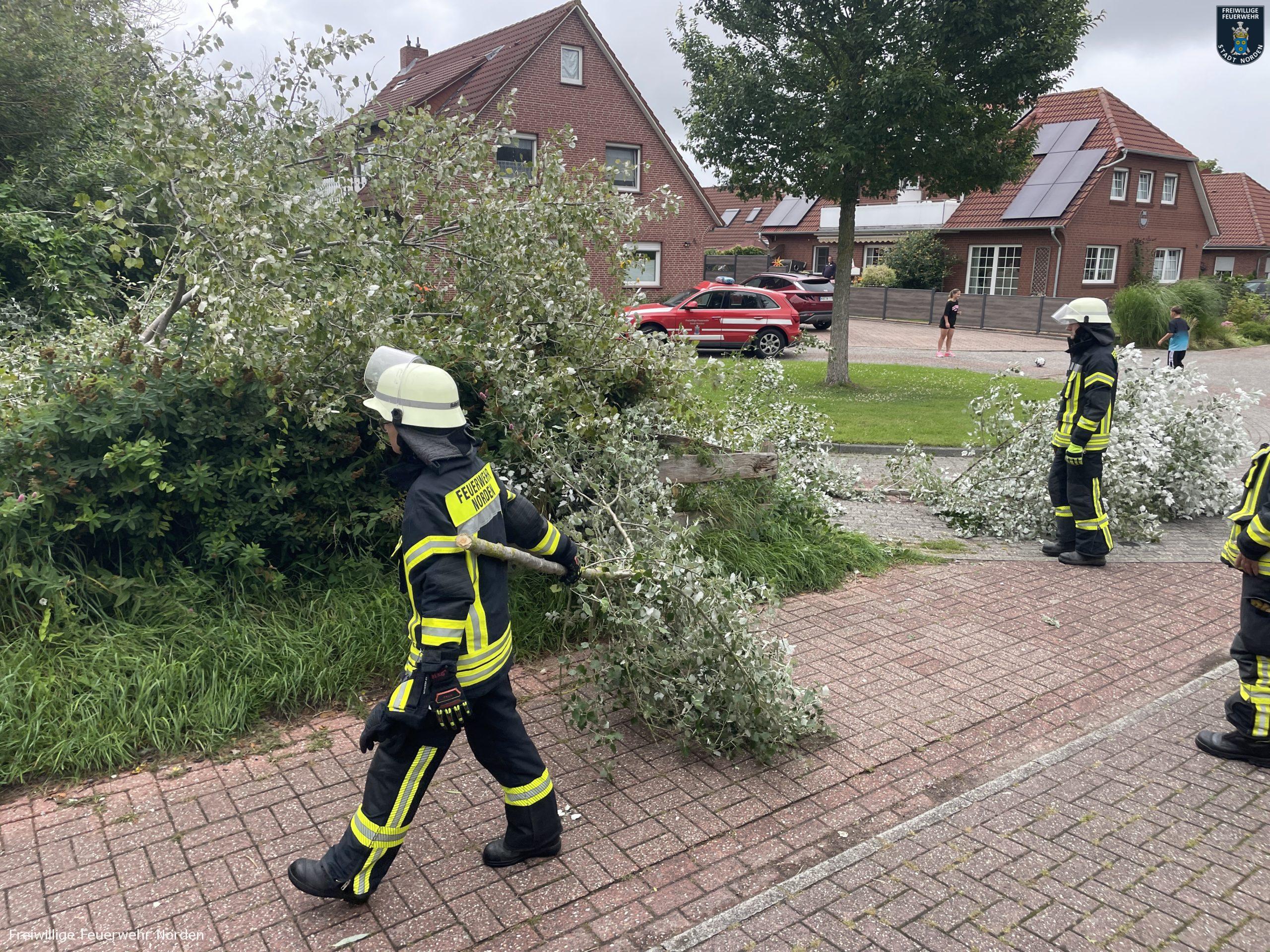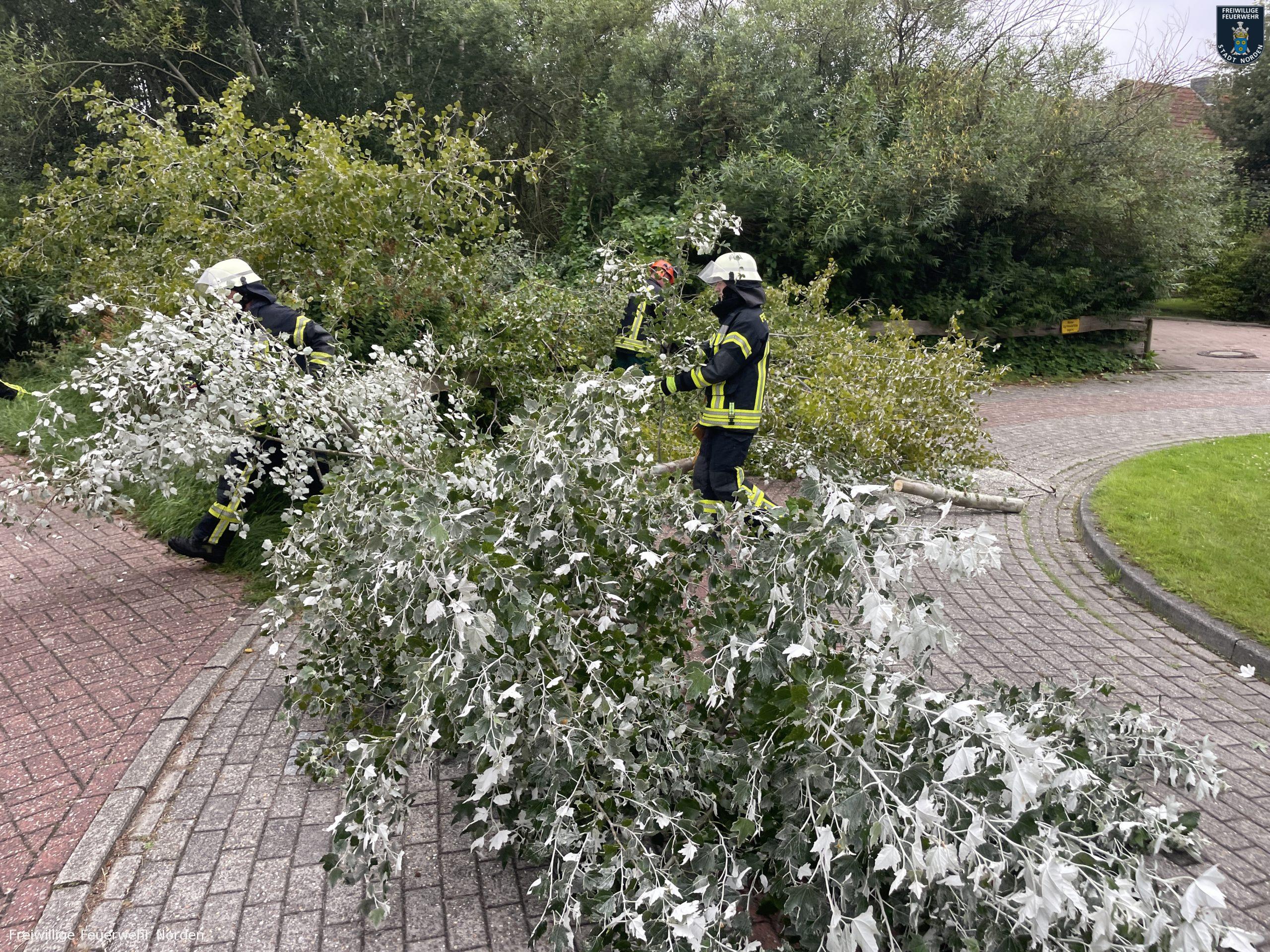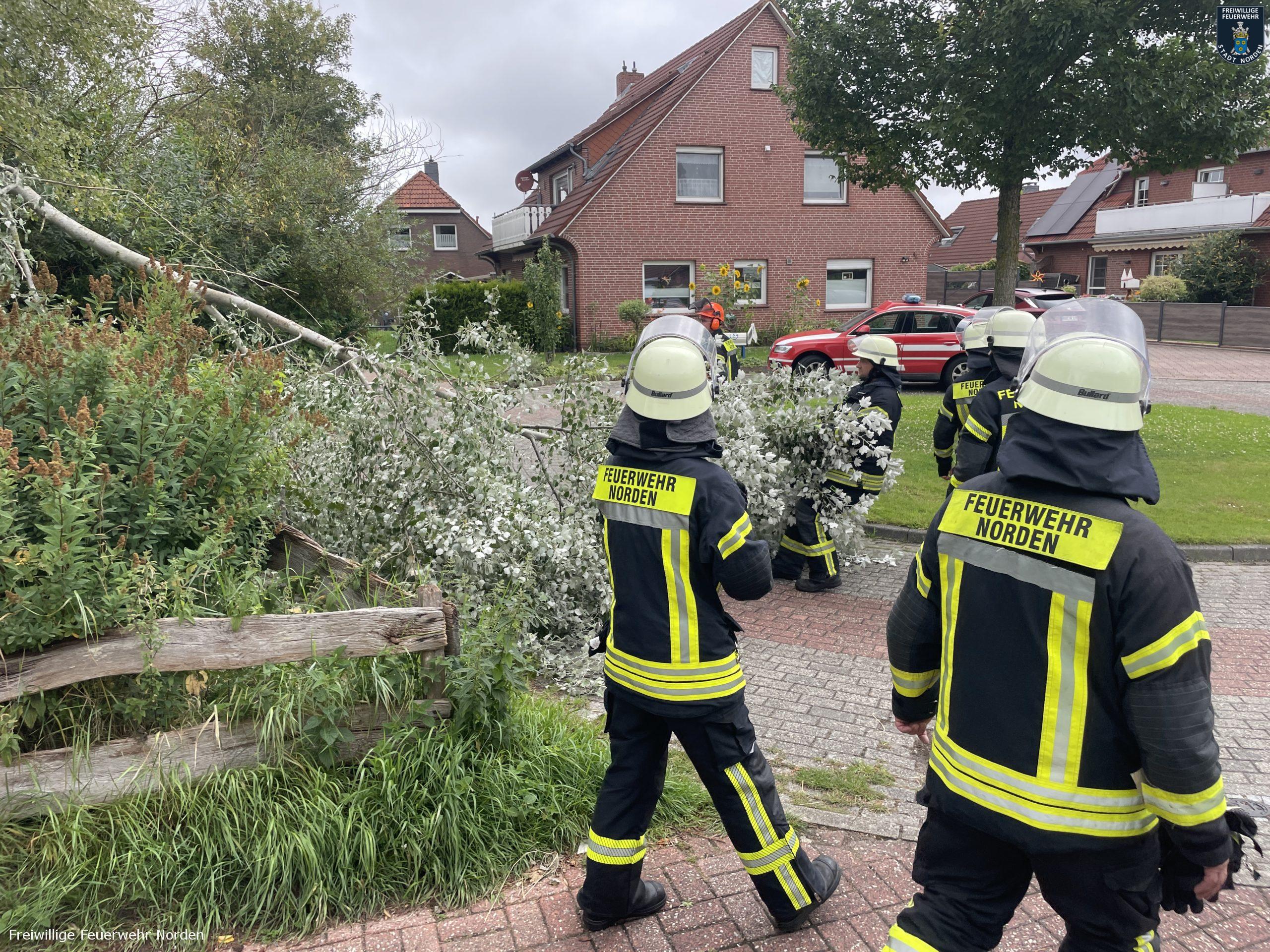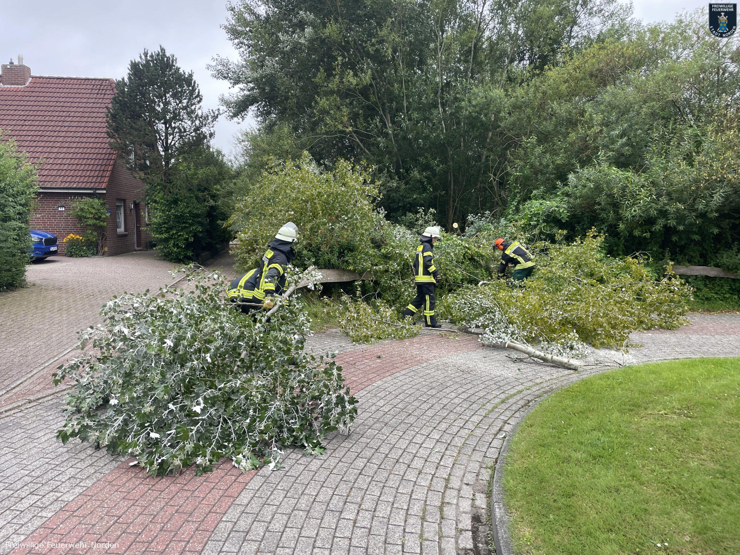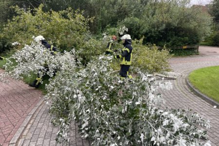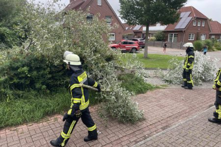 Gleich drei Pappeln sind am Sonnabend in Norddeich durch Windböen zum Umsturz gebracht worden. Die Freiwillige Feuerwehr Norden musste anrücken und die Bäume beseitigen. Anwohner hatten gegen 15 Uhr zunächst zwei in Schräglage geratene Bäume auf einem unbebauten Grundstück im Koggenweg gemeldet. Einer von ihnen ragte auf einen Wendeplatz, der andere über einen Rad- und Fußweg. Als die Einsatzkräfte eintrafen, war noch eine weitere Silberpappel umgekippt.