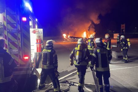 Ein Boot samt Trailer sowie ein Kofferanhänger sind in der Nacht zu Montag in Norden ein Raub der Flammen geworden. Gegen 2.30 Uhr war der Brand auf einem Parkplatz zwischen den Straßen Im Horst und Glückauf gemeldet worden. Zu diesem Zeitpunkt standen bereits alle drei Fahrzeuge komplett in Flammen. Der anrückenden Freiwilligen Feuerwehr Norden wurde der Weg zur Einsatzstelle in der Innenstadt bereits von weitem durch einen hellen Feuerschein und eine starke Rauchentwicklung gewiesen.