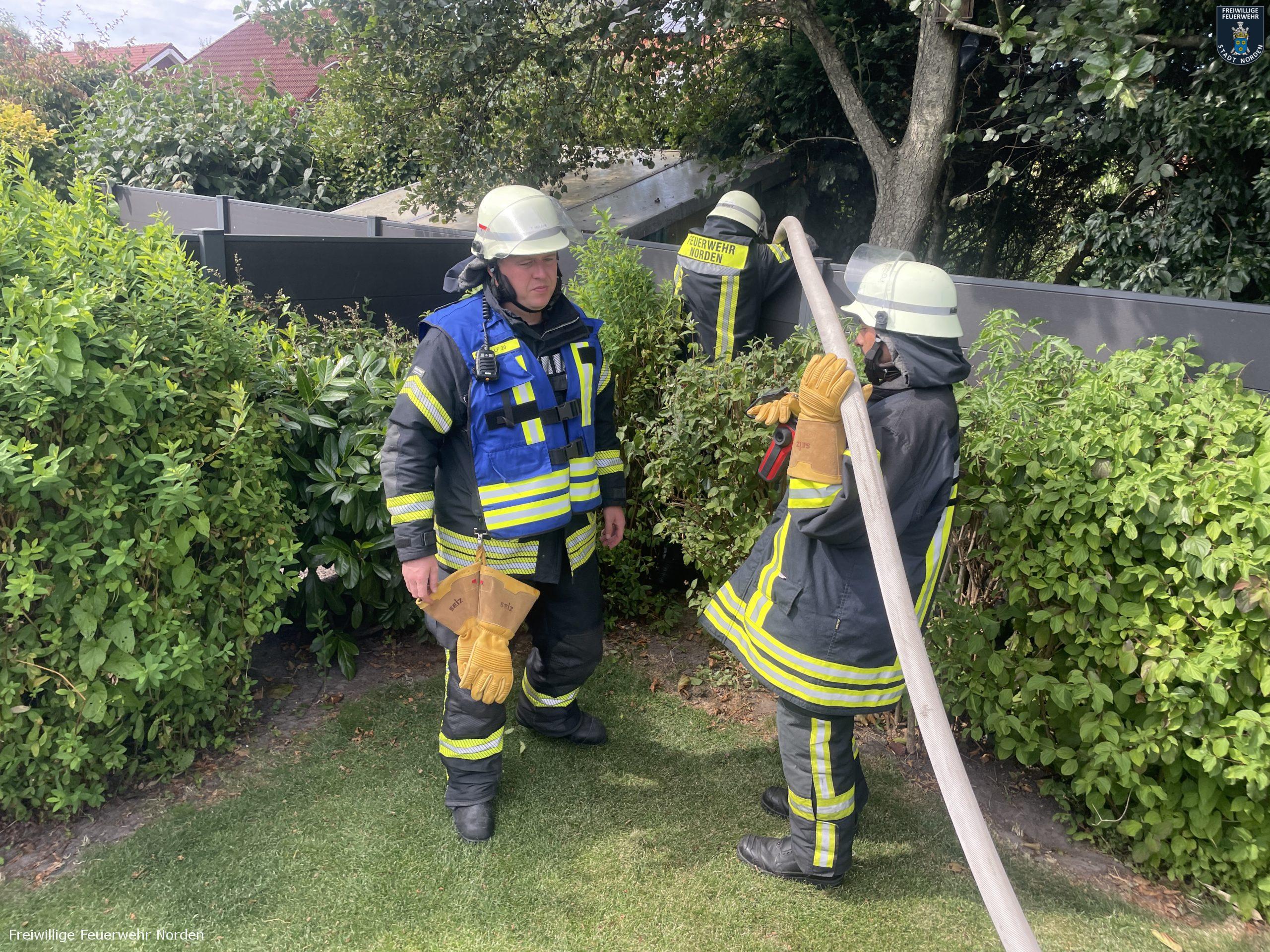 Noch nicht vollständig abgekühlte Grillkohle hat am Dienstagnachmittag einen Komposthaufen in Norden im Distelkamp in Brand gesetzt. Ein Anwohner hatte am Vormittag die am Vorabend benutzte Grillkohle auf seinem Komposthaufen entsorgt. Er war im Glauben, dass diese über Nacht ausreichend abgekühlt sei. Während er später einen Mittagsschlaf hielt, bemerkten seine Nachbarn Rauch in den Gärten und entdeckten das Feuer. Die Nachbarn handelten umsichtig. Sie begannen mit Wassereimern das Feuer selber zu löschen, riefen die Feuerwehr und weckten ihren Nachbarn. Gemeinsam bekam man das Feuer schnell unter Kontrolle, so dass die Freiwillige Feuerwehr Norden lediglich nachlöschen brauchte.