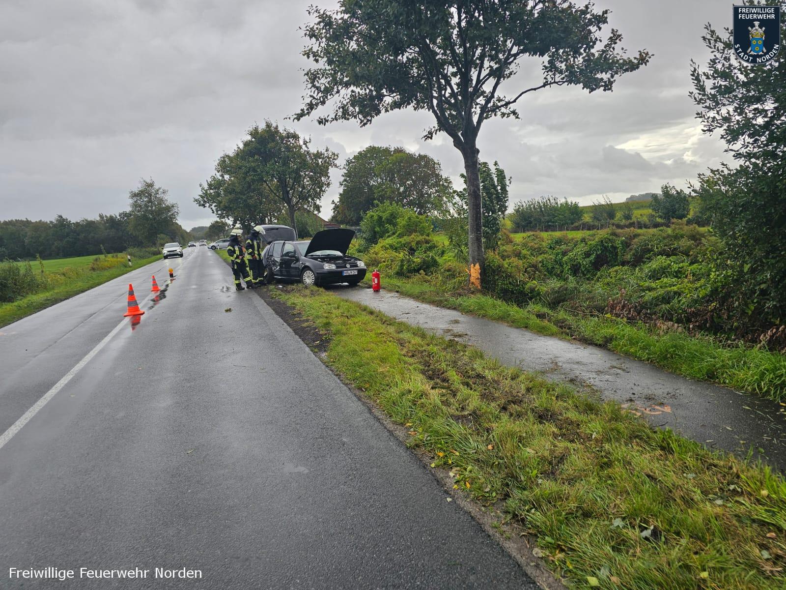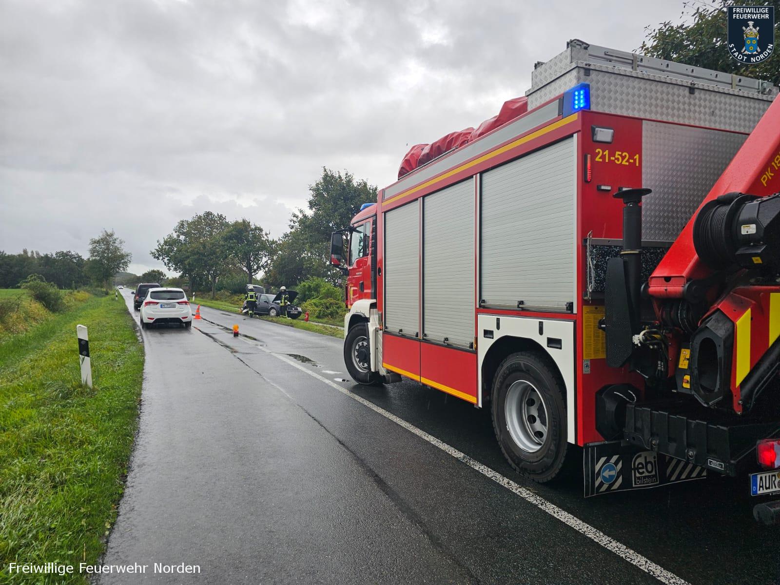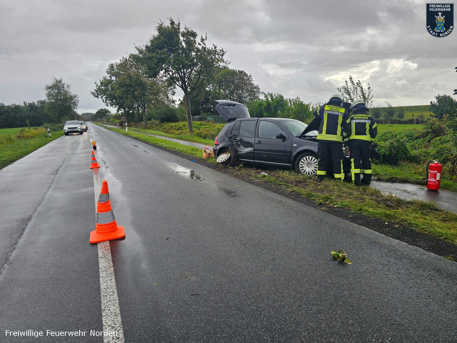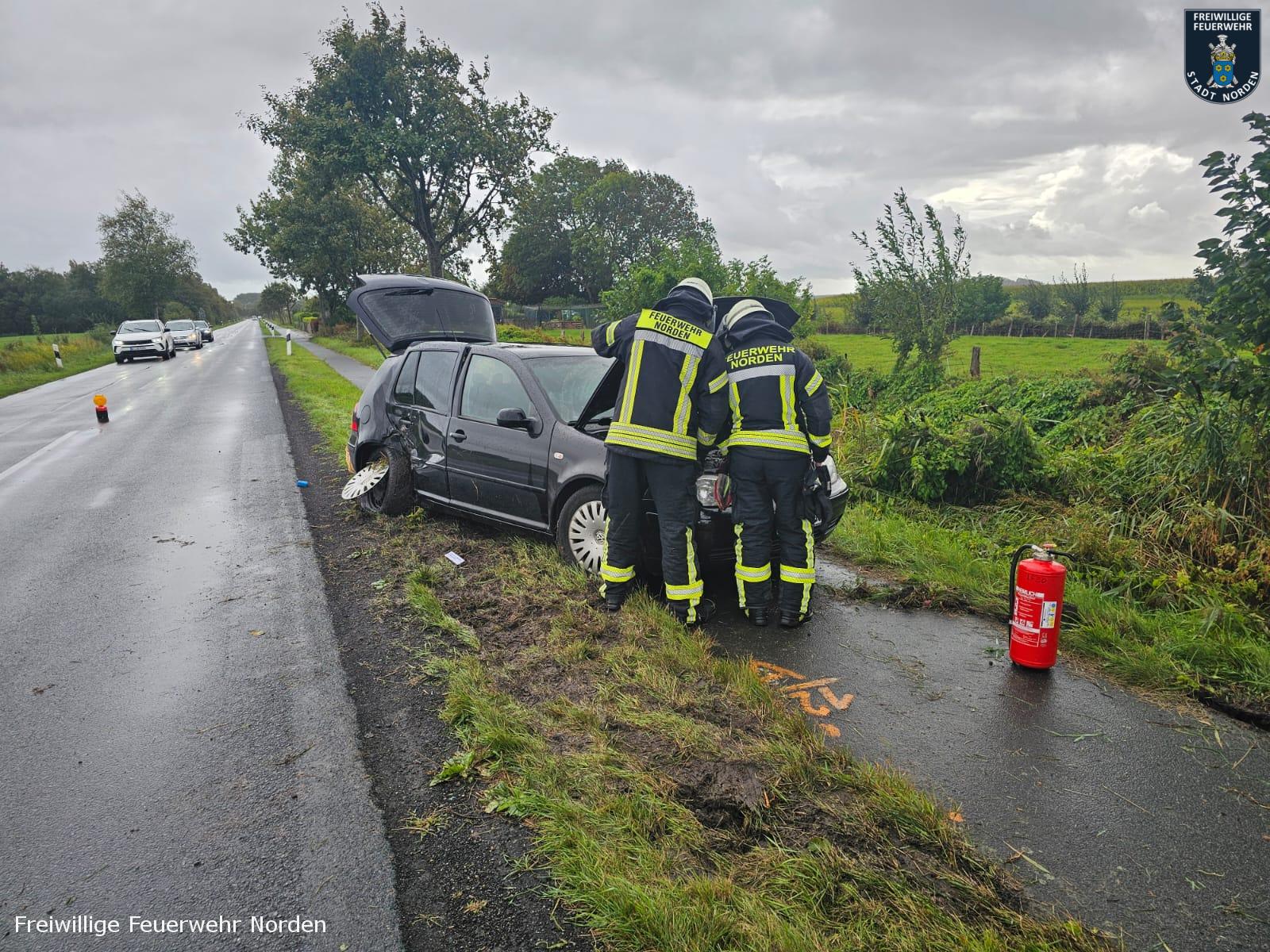 Am Dienstagnachmittag wurde die Freiwillige Feuerwehr Norden zu einem Verkehrsunfall mit zunächst vermuteter eingeklemmter Person alarmiert. Der Verkehrsunfall wurde automatisch durch ein Mobiltelefon der Leitstelle Ostfriesland gemeldet und befand sich auf der Westermarscher Straße im Ortsteil Westermarsch 1. Vor Ort konnte durch die Einsatzkräfte festgestellt werden, dass ein PKW alleinbeteiligt war und die Insassen das Unfallfahrzeug bereits verlassen hatten. Sie wurden durch den Rettungsdienst versorgt. Neben den Einsatzkräften der Norder Wehr waren der Rettungsdienst mit Notarzt und eine Streifenwagenbesatzung der Polizei vor Ort.