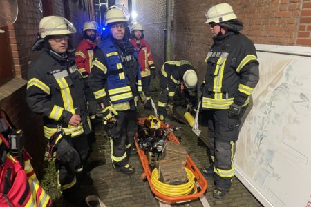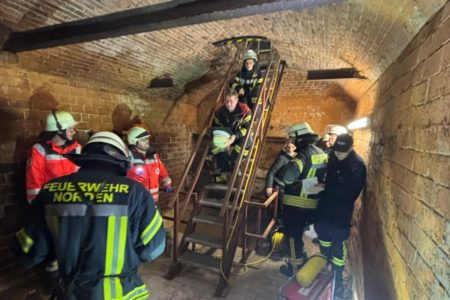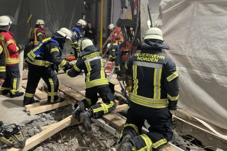 Das Heizkraft der Stadtwerke Norden auf dem ehemaligen Doornkaatgelände in der Norder Innenstadt wird seit mehreren Monaten umfangreich modernisiert. Die Arbeiten befinden sich in der finalen Phase, sodass die Inbetriebnahme bevorsteht. Natürlich kann es bei solchen umfangreichen Arbeiten auch mal zu Zwischenfällen kommen. Genau das, hat die Freiwillige Feuerwehr Norden am Dienstagabend als Grundlage für ihre diesjährige Herbstübung angenommen. Die Inbetriebnahme war echt, eine angenommene Gasexplosion sowie ein Baustellenunfall waren nur Darstellung. Die historischen Gebäude und die laufenden Bauarbeiten bescherten den 120 Einsatzkräften ein besonders authentisches Übungserlebnis in einem besonderen Ambiente.