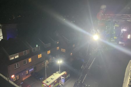 In dem Gebäude waren Rauch und Feuerschein sichtbar und vom Dach laute Hilfeschreie zu hören. Für die Norder Feuerwehr wird aufgrund der komplexen Lage Vollalarm ausgelöst und auch der Einsatzzug Nord des Deutschen Roten Kreuzes (DRK) angefordert. So werden an dem Abend 120 Einsatzkräfte an der Übung beteiligt. Atemschutzgeräteträger dringen als erstes in das Gebäude vor und bahnen sich den Weg. Trümmer erschweren das Vorgehen. Parallel geht die Drehleiter in der Doorntkaatlohne in Stellung und wird zur Rettung von drei Personen aus zirka 20 Metern Höhe eingesetzt.