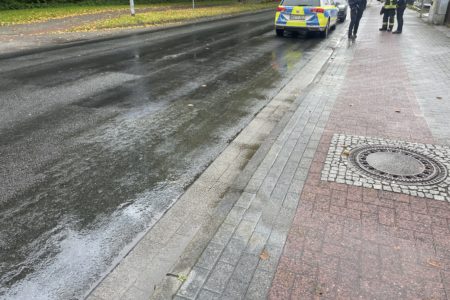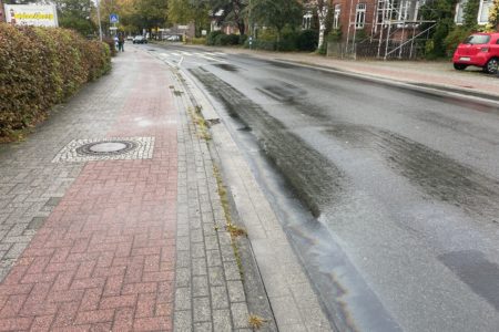 Eine sechs Kilometer lange Dieselspur hat am Mittwochnachmittag in Norden für einen stundenlangen Einsatz der Polizei, der Norder Stadtentwässerung, der Deich- und Sielacht Norderland, des Baubetriebshofs, einer Fahrbahnreinigungsfirma und der Freiwilligen Feuerwehr Norden gesorgt. Am Nachmittag meldeten mehrere Verkehrsteilnehmer der Polizei eine Dieselspur im Bereich der Heerstraße. Zu dem Zeitpunkt regnete es leicht, sodass ein bunter Regenbogenfilm auf der Straße zu sehen war. Nach und nach gingen weitere Notrufe bei der Leitstelle Ostfriesland ein. Die Spur zog sich immer weiter stadteinwärts bis nach Süderneuland und zum Norder Hafen. Die Anrufer berichteten nicht nur von der Ölspur, sondern auch von akuter Rutschgefahr in Kurven und auf Kreuzungen.