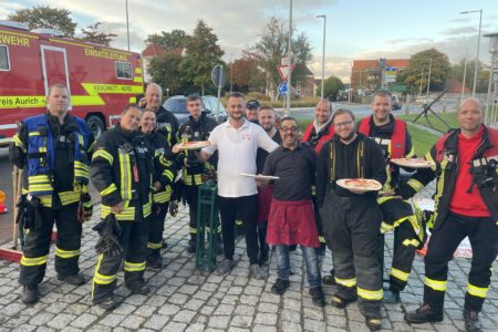 Da für die zirka 25 Feuerwehrleute einsatzbedingt das heimische Abendessen ausfiel, musste sich die Feuerwehr auch Gedanken zur Verpflegung an der Einsatzstelle machen. Der Besitzer des Restaurants da Sergio am Norder Hafen hatten den stundenlang Feuerwehreinsatz vor seinem Geschäft mitbekommen und sich ebenfalls Gedanken um den Hunger der Einsatzkräfte gemacht. Ohne weiter Nachzufragen, ließ er in seiner Küche mehrere Pizzen anfertigen und diese von seinen Kellnern auf der Straße servieren. Diese Wertschätzung schaffte nicht nur Abhilfe in der Hungerproblematik, sondern auch zusätzliche Motivation für den weiteren Einsatzverlauf.
