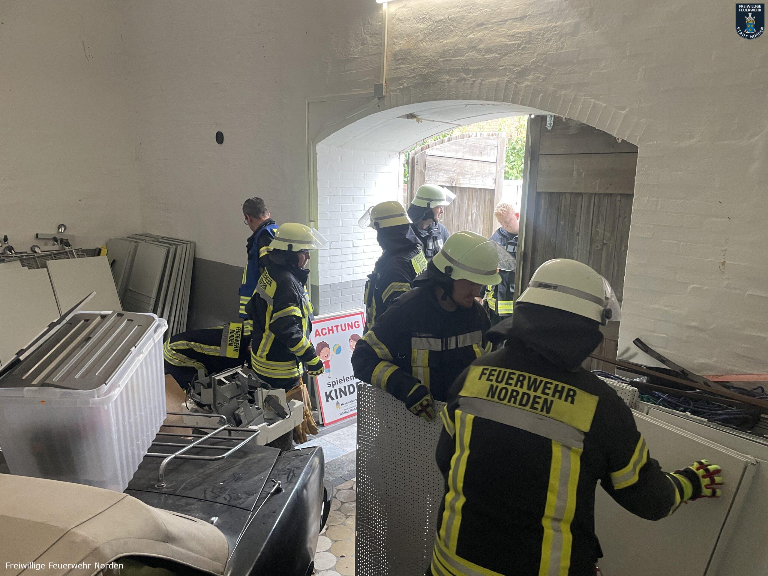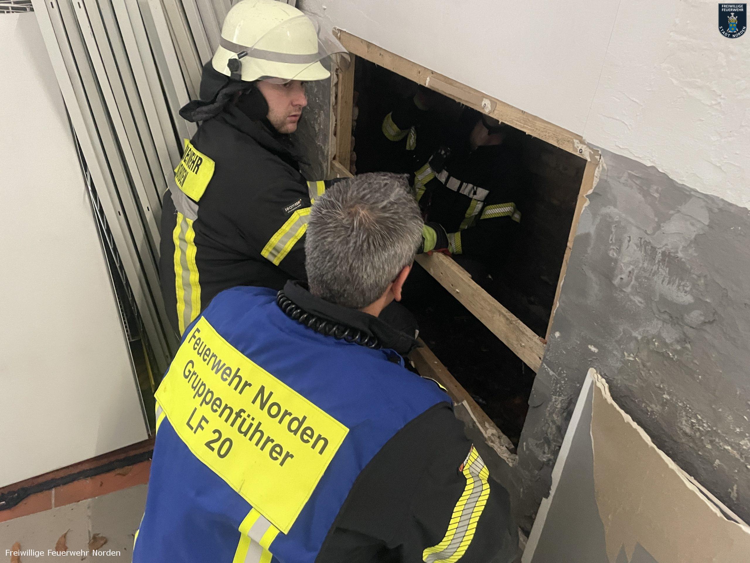 Besitzer eines Katers in Norden sind seit Tagen in Sorge um ihren Kater Charlie. Der Freigänger war verschwunden. Bereits am Dienstag hatten die Besitzer ihn dann aus einem alten Lagergebäude in der Dammstraße miauen gehört. Mit dem Mieter des Gebäudes durchsuchten sie es. Gefunden hatten sie Charlie dabei nicht, jedoch hörten sie weiterhin Geräusche aus einer Hohlschicht. Mit dem Mieter schufen sie eine Kleine Öffnung in die Wand, in der Hoffnung, dass sich das Tier hierdurch selbst befreien kann. Am Mittwochmittag war der Kater dann immer noch in dem Lagerhaus zu hören, jedoch nicht zu sehen. Nun riefen die Besitzer die Freiwillige Feuerwehr Norden.