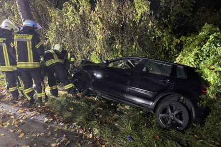 Ein mit zwei Personen besetzter Pkw ist am späten Mittwochabend in Norden gegen einen Baum geprallt. Der Wagen befuhr die Westermarscher Straße. In einer scharfen Linkskurve kam die Fahrerin nach rechts von der Fahrbahn ab und geriet in einen Straßengraben. Dort stieß der VW Polo gegen einen Baum. Der Beifahrer kam mit dem Schrecken davon, die Frau leicht verletzt. Das Auto wurde jedoch erheblich beschädigt.