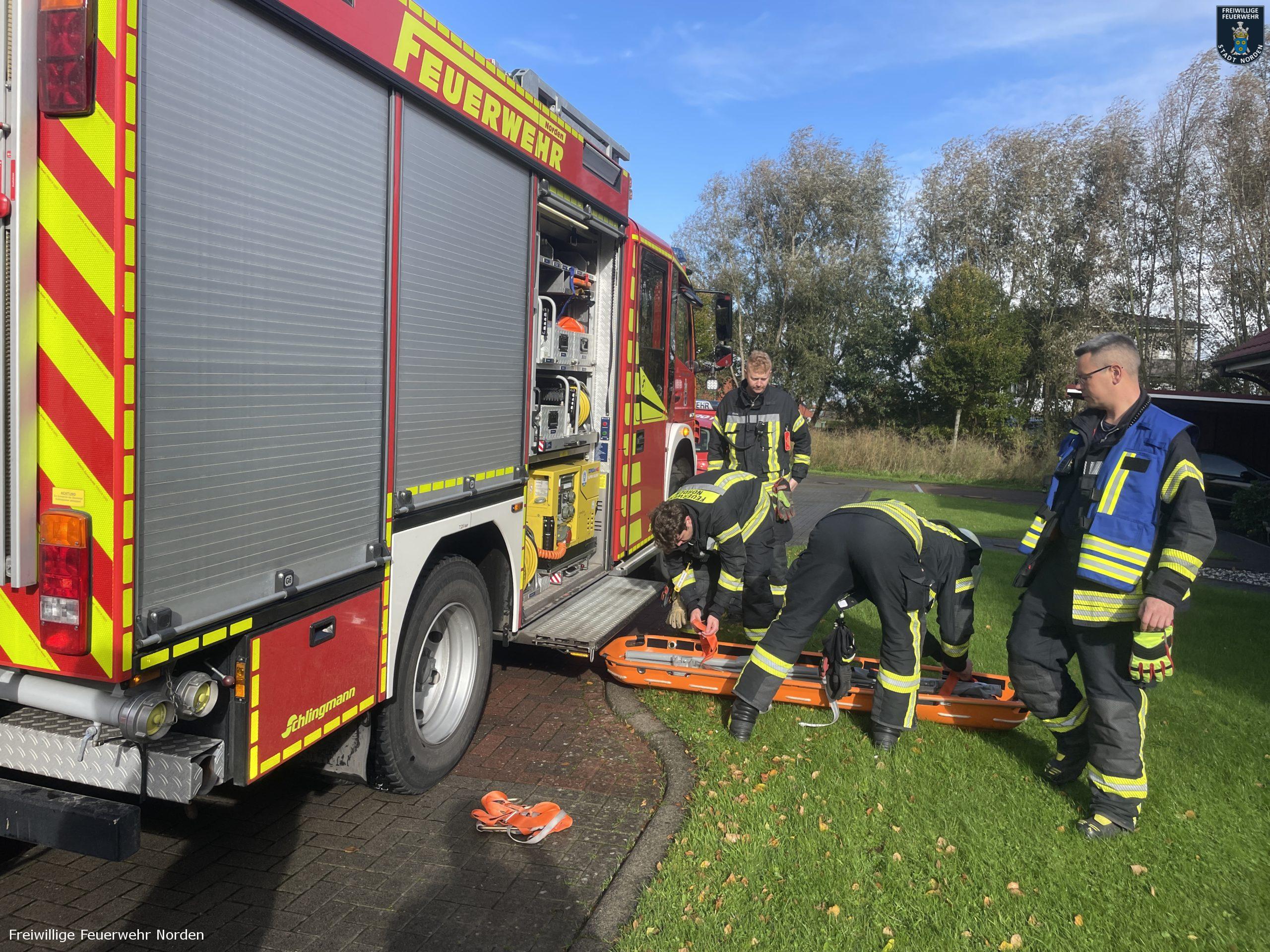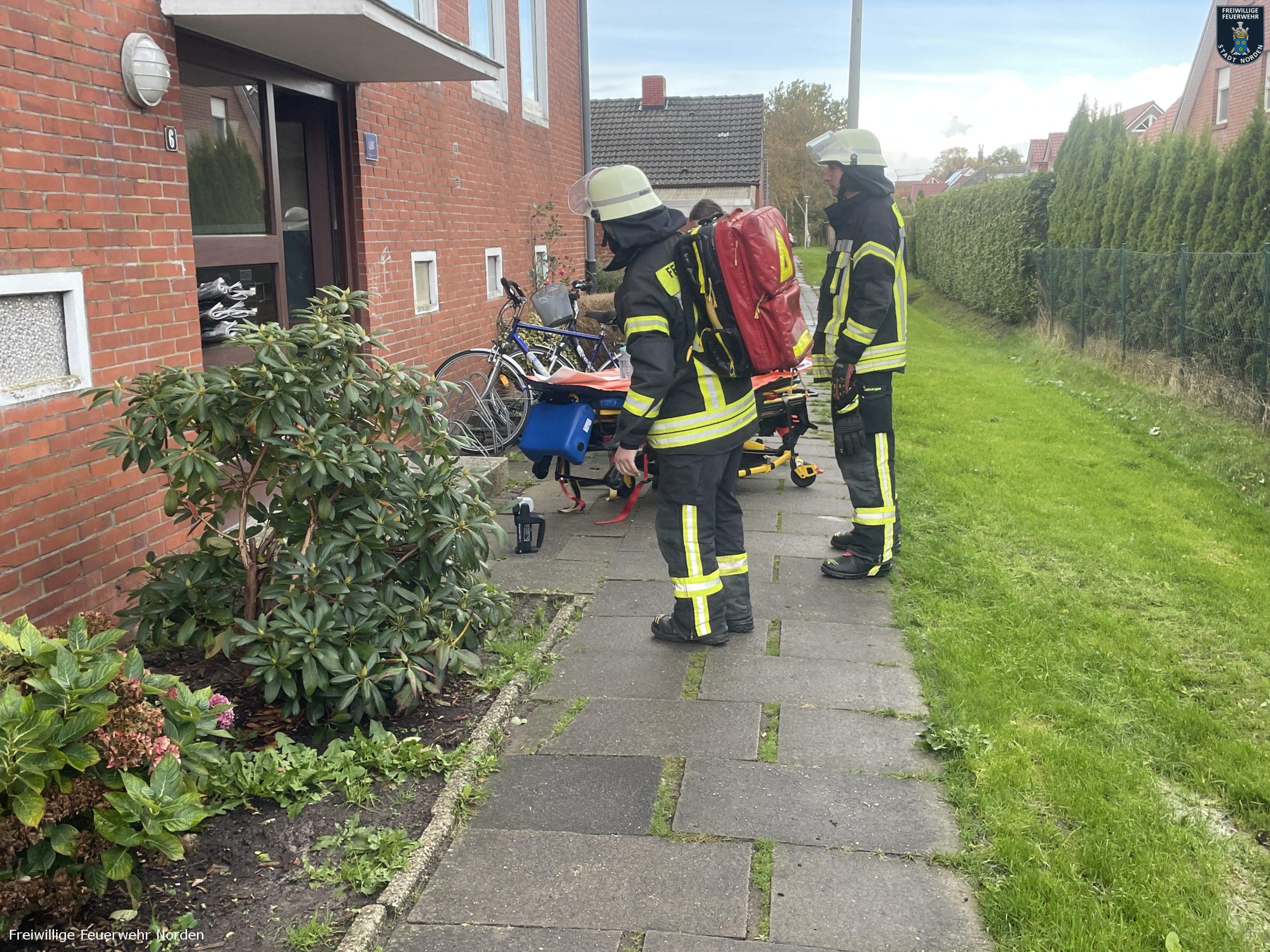 Die Nachbarn wählten den Notruf, worauf die Freiwillige Feuerwehr Norden und der Rettungsdienst in die August-Hinrichs-Straße ausrückte. Den Feuerwehrleuten gelang es über eine Leiter ein Wohnungsfenster schadenfrei zu öffnen und dem Rettungsdienst den Zugang zu der Patientin zu ermöglichen. Anschließend unterstützten die Feuerwehrleute den Rettungsdienst beim Tarnsport der Verletzten durch das Treppenhaus.