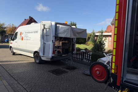 Am Morgen rückte zunächst die Norder Stadtentwässerung in der Radbodstraße an. Mehrere Anwohner hatten intensiven Geruch von Diesel in ihren Häsern bemerkt und gemeldet. Der markante Duft war durch die Abflüsse in die Häuser gelangt. Die städtischen Mitarbeiter stellten bei der Kontrolle der Kanalisation geringe Mengen von Diesel oder Heizöl fest und riefen die Feuerwehr. Die Einsatzkräfte machten sich auf die Suche nach der Herkunft und wurden auf einem Grundstück fündig. Die Feuerwehrleute öffneten dort eine Gartenpforte und einen Schuppen. Schnell war ersichtlich, dass in dem Gebäude mehrere Liter Heizöl ausgelaufen waren und sich den Weg ins Freie gesucht hatten. Die ebenfalls verständigte Polizei machte den abwesenden Hausbesitzer ausfindig. Dieser hatte von dem Schaden noch gar nichts mitbekommen.