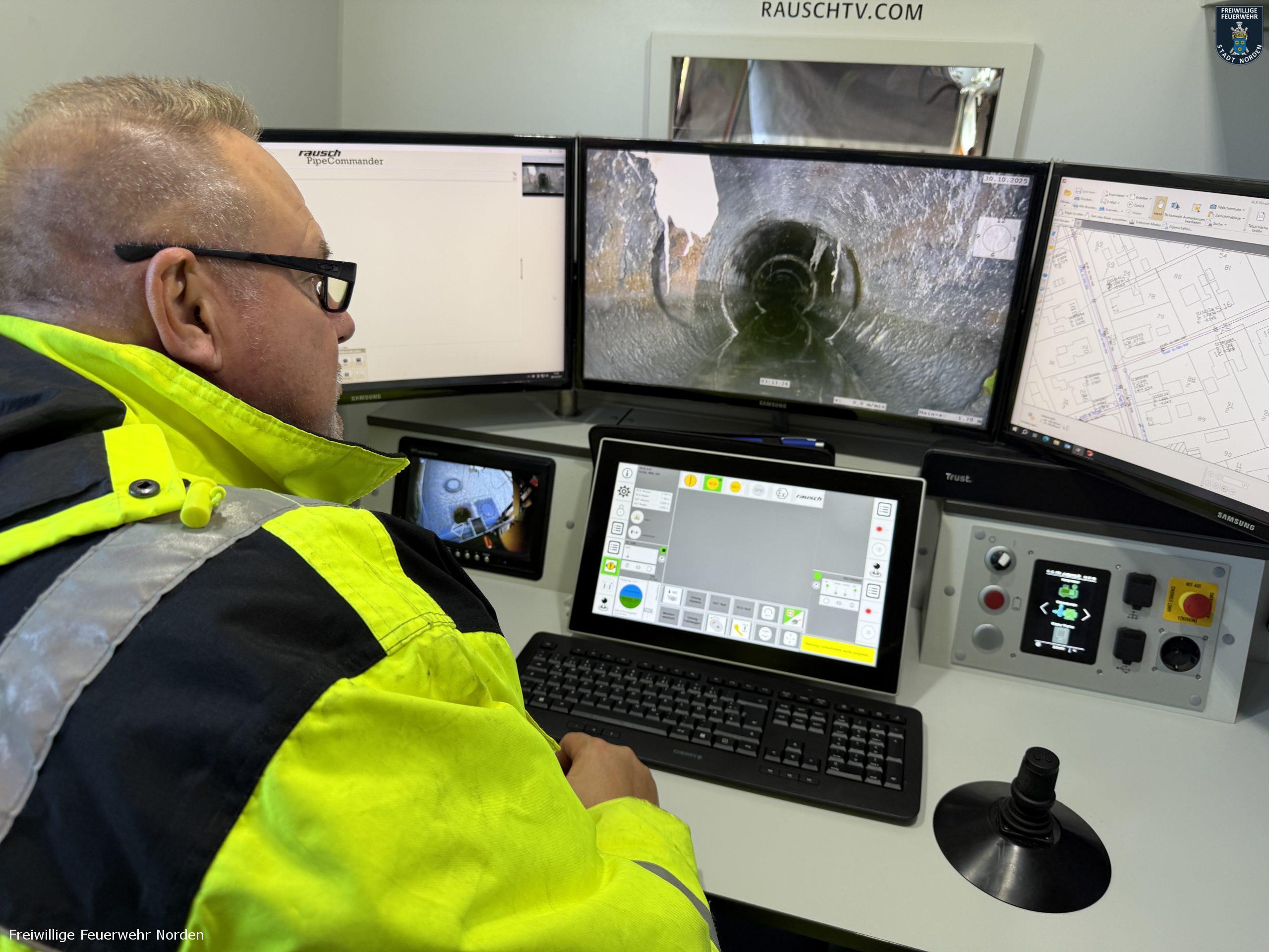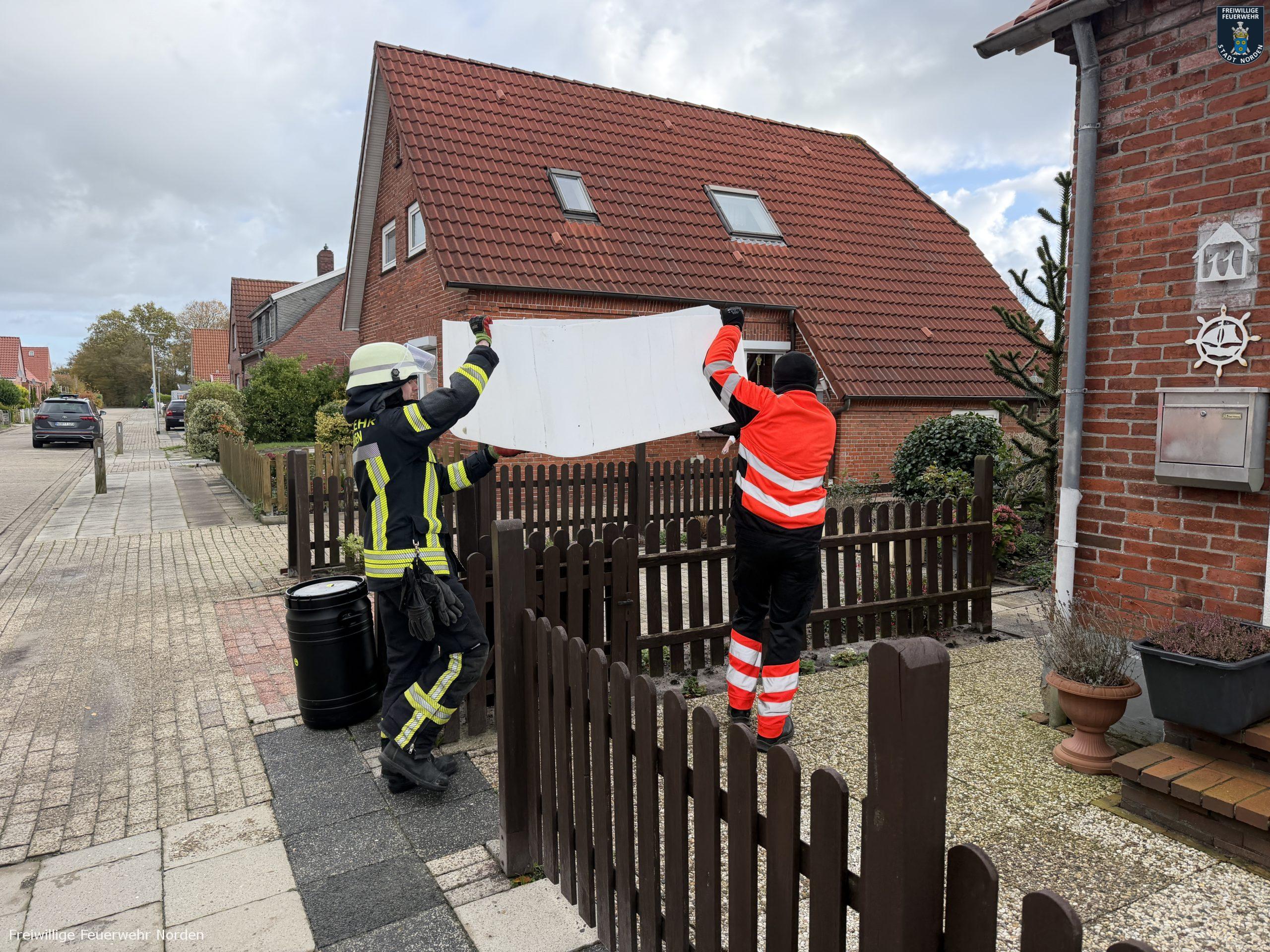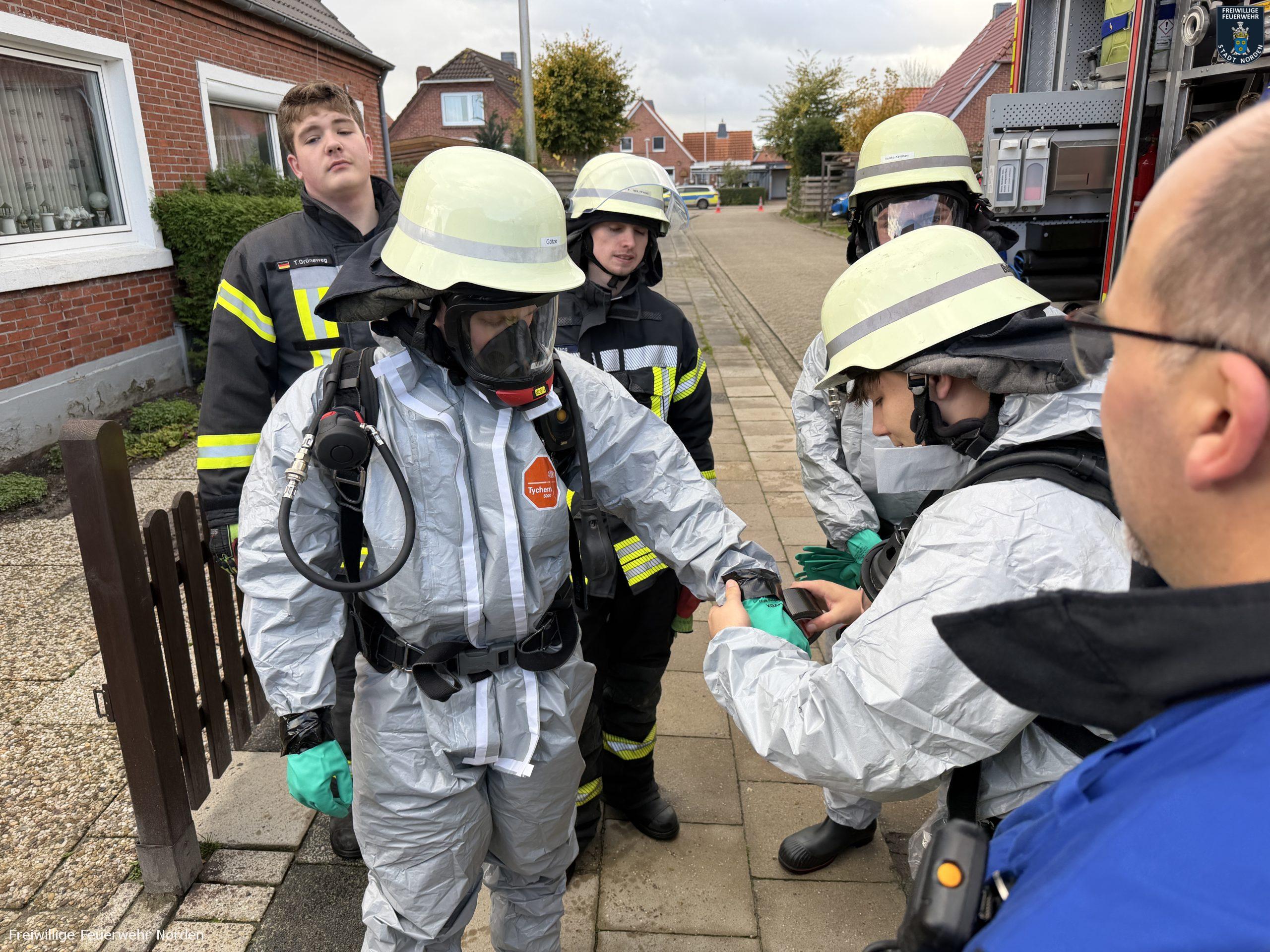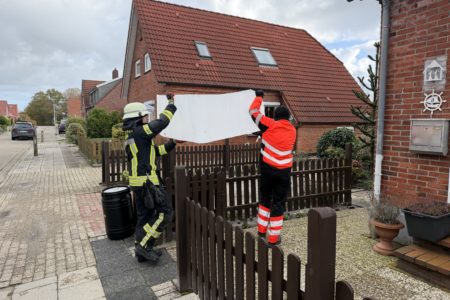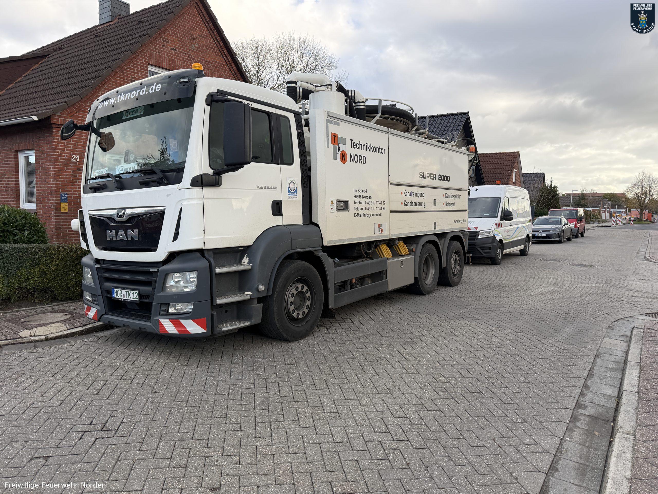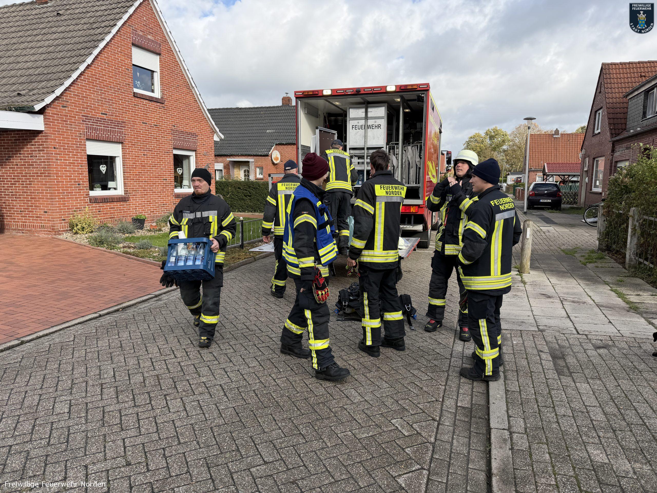Am Morgen rückte zunächst die Norder Stadtentwässerung in der Radbodstraße an. Mehrere Anwohner hatten intensiven Geruch von Diesel in ihren Häsern bemerkt und gemeldet. Der markante Duft war durch die Abflüsse in die Häuser gelangt. Die städtischen Mitarbeiter stellten bei der Kontrolle der Kanalisation geringe Mengen von Diesel oder Heizöl fest und riefen die Feuerwehr. Die Einsatzkräfte machten sich auf die Suche nach der Herkunft und wurden auf einem Grundstück fündig. Die Feuerwehrleute öffneten dort eine Gartenpforte und einen Schuppen. Schnell war ersichtlich, dass in dem Gebäude mehrere Liter Heizöl ausgelaufen waren und sich den Weg ins Freie gesucht hatten. Die ebenfalls verständigte Polizei machte den abwesenden Hausbesitzer ausfindig. Dieser hatte von dem Schaden noch gar nichts mitbekommen.