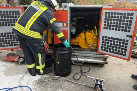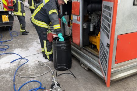 Eine defekte Grundwassersenkungspumpe hat am Sonntagmittag einen Einsatz der Freiwilligen Feuerwehr Norden ausgelöst. Anwohnern der Hamburger Straße war zuvor aufgefallen, dass sich auf der Straße ein schillernder Ölfilm auf der Straße ausbreitete und in einen Gully lief. Der Ursprung war auch schnell zu erkennen – eine wenige Meter entfernt aufgestellte Pumpe, die sich auf einer Baustelle in Betrieb befand. Die Feuerwehr nahm zunächst die Maschine außer Betrieb und sicherte den Gully mit Bindemittel. In der Kanalisation brachten die Feuerwehrleute eine Ölsperre aus. Mit einer Umfüllpumpe pumpten sie rund 60 Liter Öl-Diesel-Wasser-Gemisch aus der Aufwangwanne der Maschine ab. Nach rund zwei Stunden übernahm ein Verantwortlicher der Baufirma und des Eigentümers der Grundwassersenkungspumpe die Einsatzstelle. Er organsierte weitere Reinigungs- und Entsorgungsaufgaben. Die Polizei nahm der Vorfall auf.