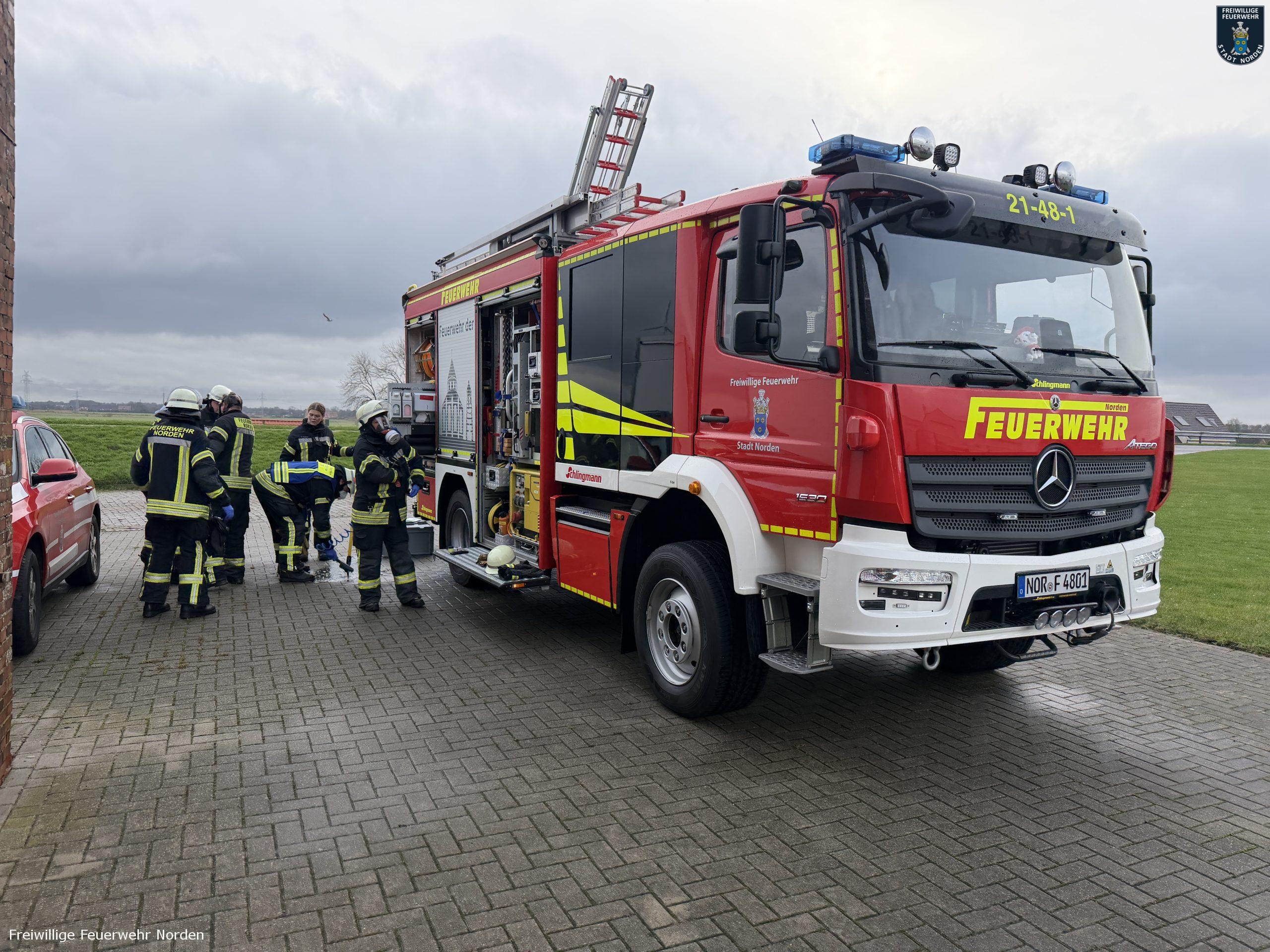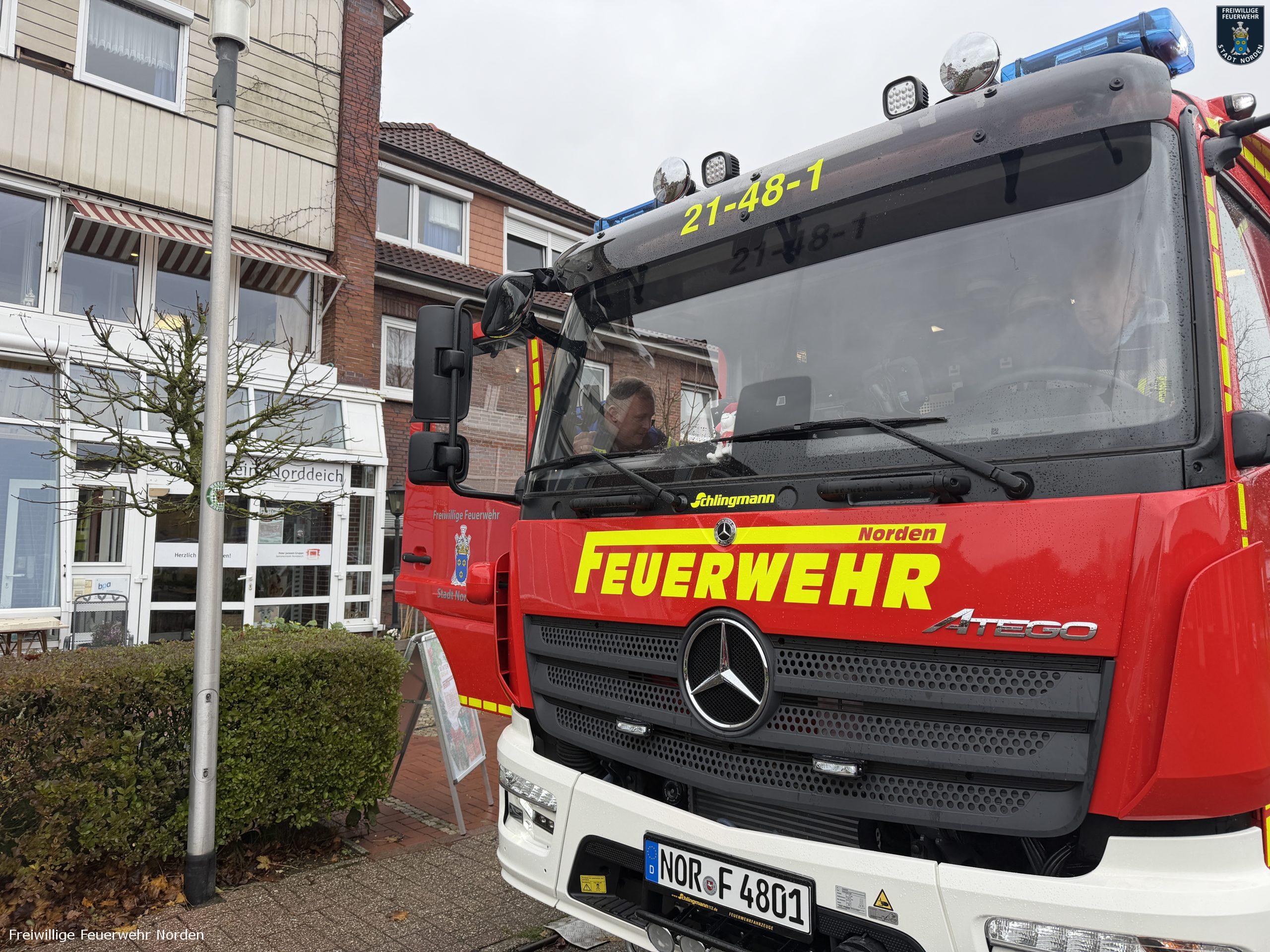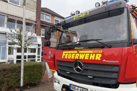 Die Norder Feuerwehr hat am Mittwochvormittag zwei Einsätze nacheinander abgearbeitet – beide in Norddeich. Zunächst rückten die Einsatzkräfte in den Wattweg aus. Dort hatte die Brandmeldeanlage eines Seniorenheims ausgelöst. Wie sich herausstellte, war dort heißes Wasser aus einem geplatzten Schlauch an einem Waschbecken ausgetreten. Der dabei entstandene Dampf hatte einen Rauchmelder aktiviert. Das Heimpersonal hatte den Wasserschaden bereits mit Feudeln in den Griff bekommen. Die Feuerwehr brauchte somit nicht tätig werden.