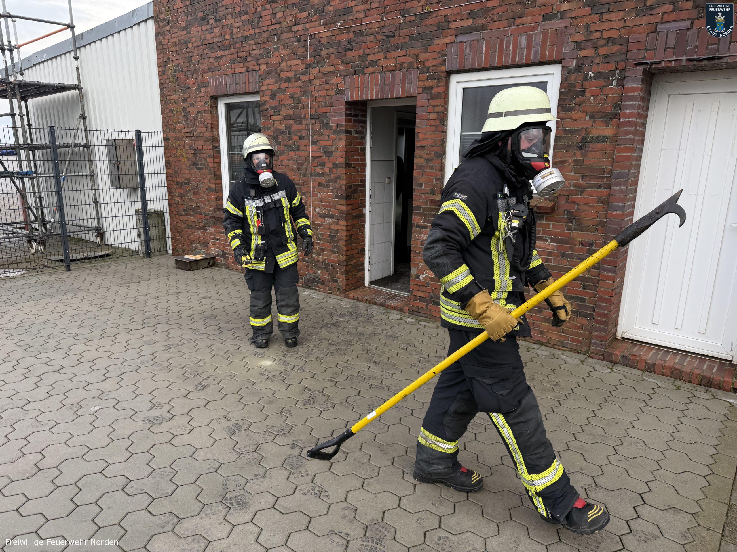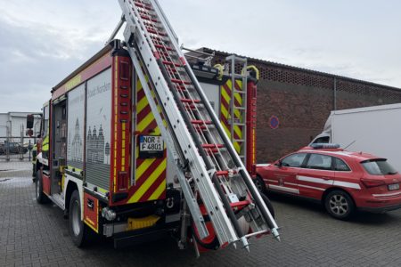 Von der Einsatzstelle ging es direkt weiter in den Norddeicher Hafen. Dort hatte, vermutlich bereits in der Nacht, ein Sicherungskasten in einer Lagerhalle gebrannt. Das Feuer war aufgrund Sauerstoffmangels von selbst erloschen. Am Vormittag entdeckten dann Mitarbeiter den erheblichen Brandschaden. Sie hatten die Feuerwehr zu einer Brandnachschau angefordert. Die Feuerwehrleute kontrollierten den Brandbereich mit einer Wärmebildkamera und entfernten einige Bauteile. Löscharbeiten waren nicht notwendig.