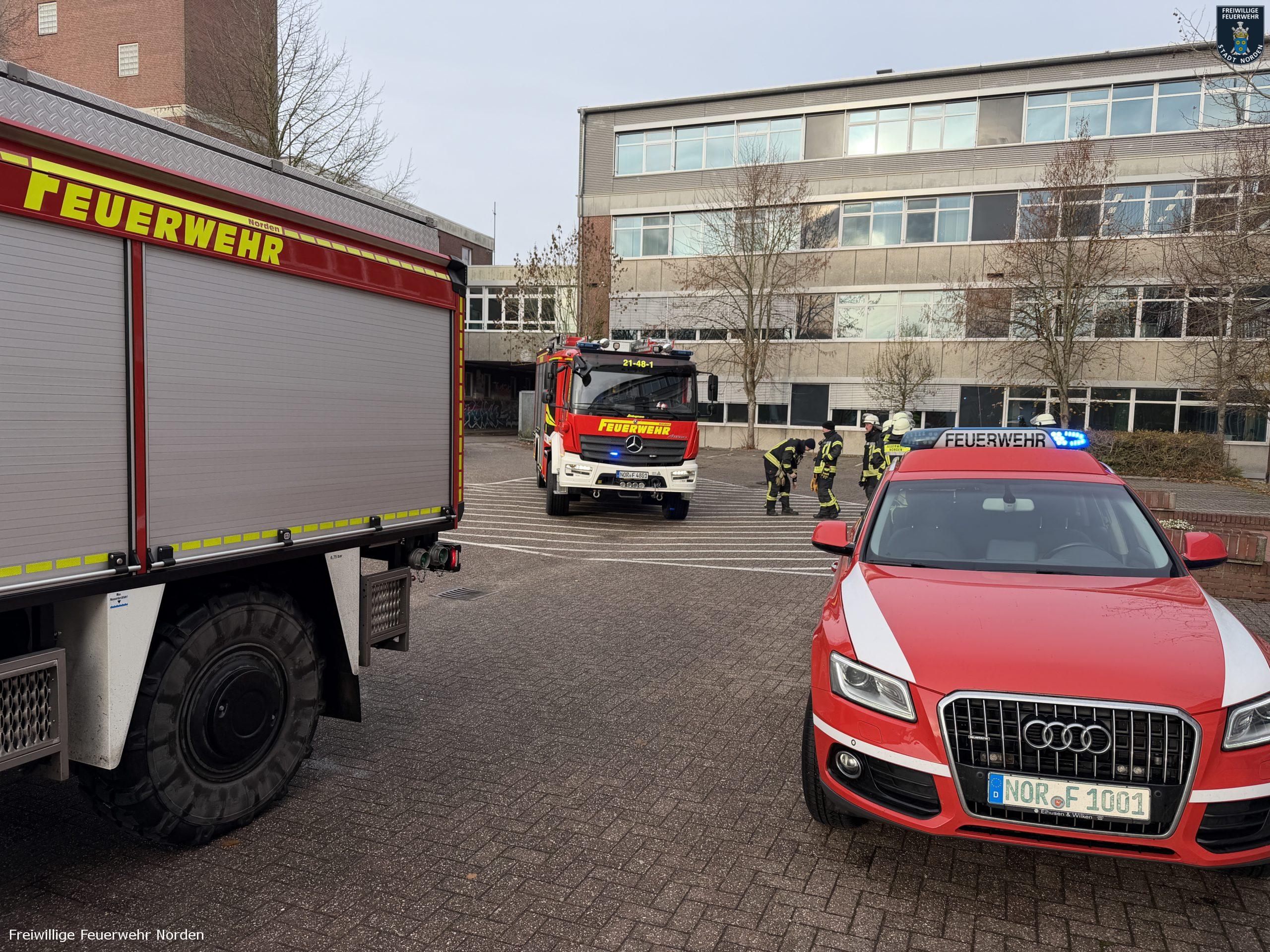 Zum wiederholten Male ist die Freiwillige Feuerwehr Norden vergebens zur Conerus-Schule in Norden ausgerückt. Am Sonnabendvormittag löste die Brandmeldeanlage erneut fehlerhaft aus. Wie auch bereits am Wochenende zuvor hatte sich ein Rauchmelder im Dachbereich gemeldet. Nach kurzer Kontrolle konnten die Feuerwehrleute die Einsatzstelle an den Schulleiter übergeben.
