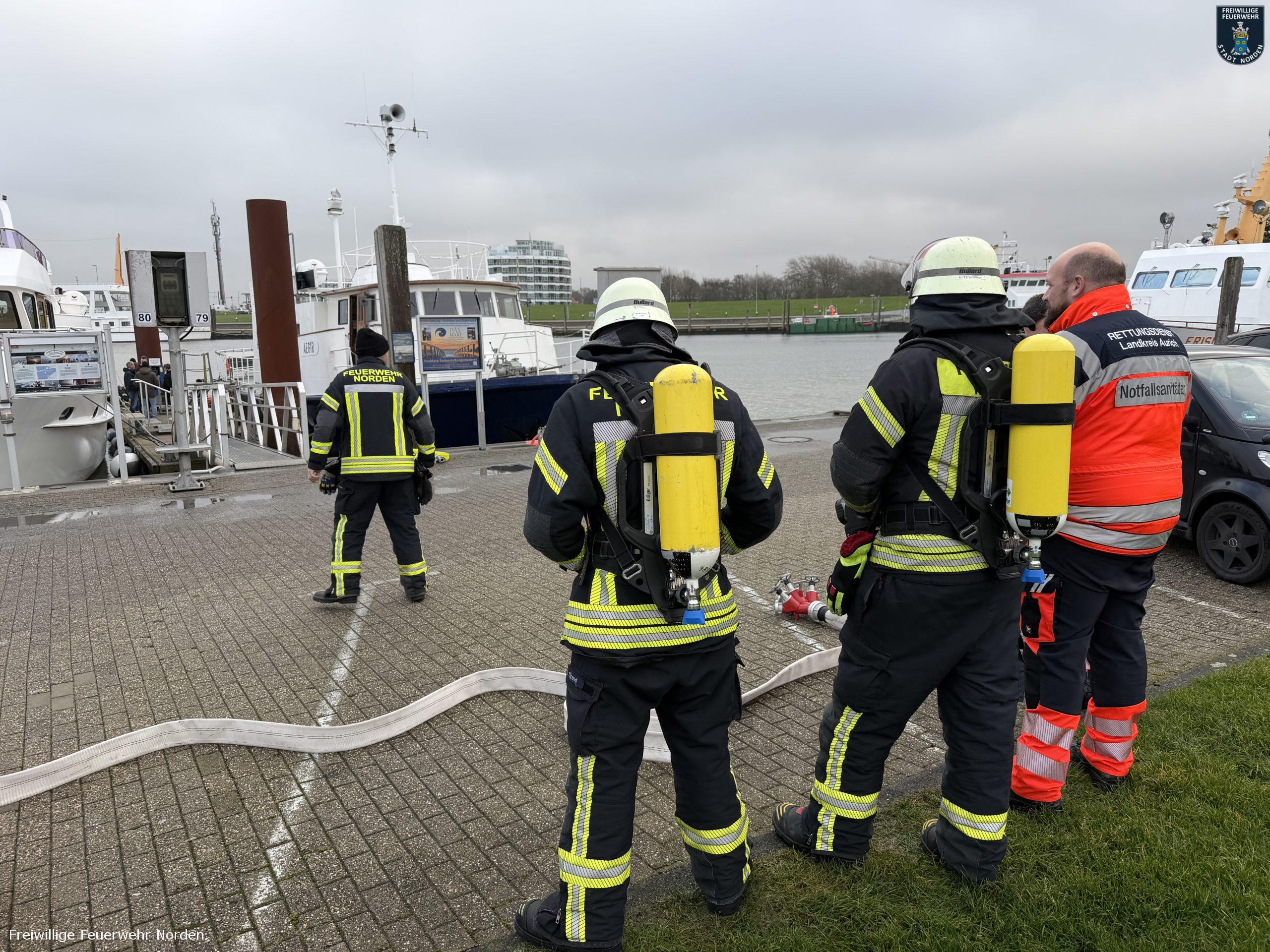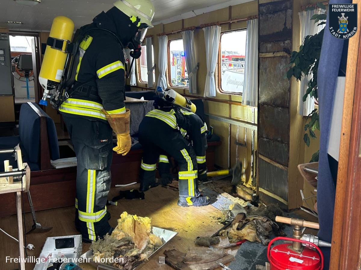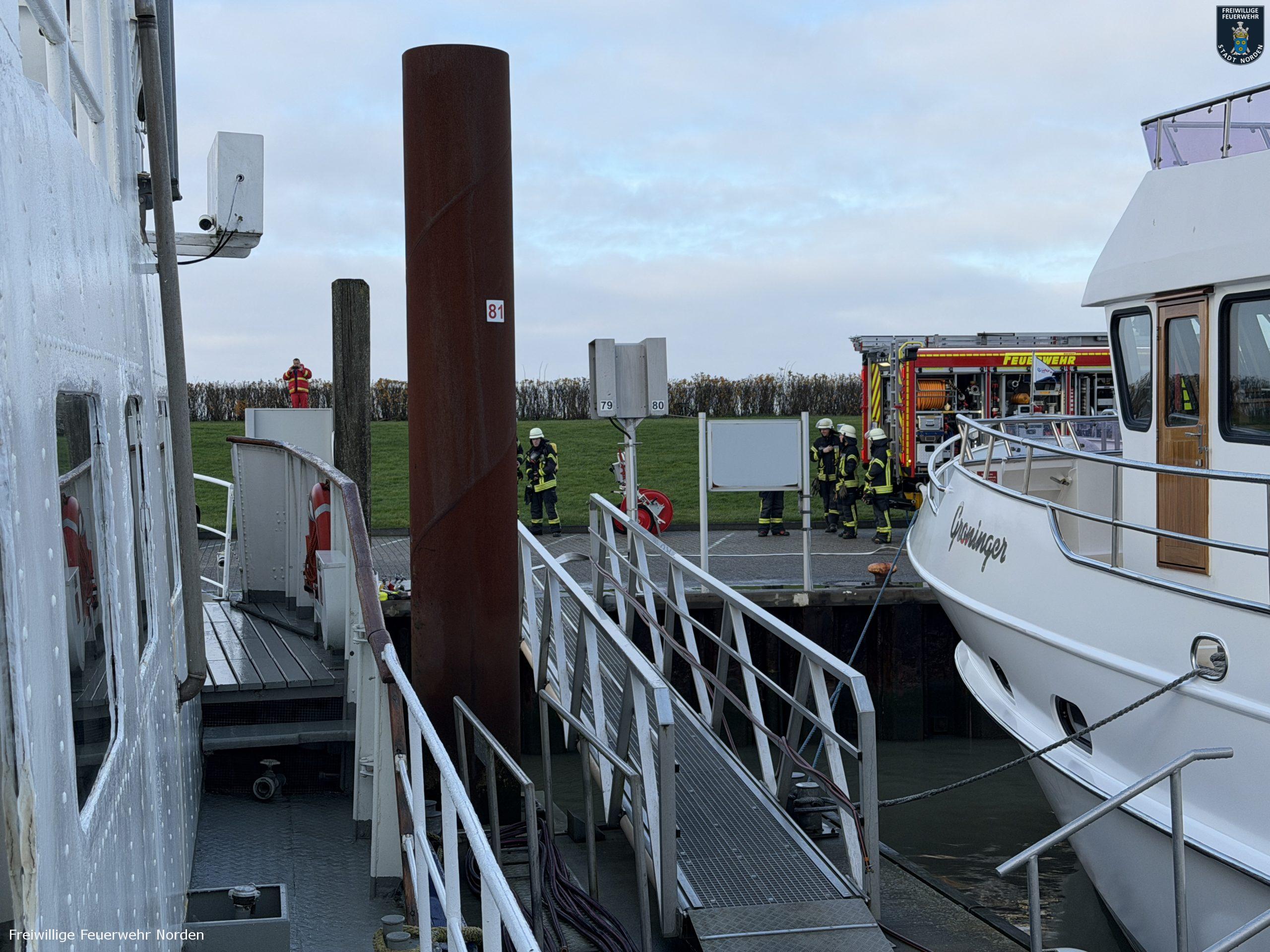 Auf einem Schiff für Seebestattungen ist am Sonntagvormittag im Norddeicher Hafen ein Schwelbrand entdeckt worden. Ein Matrose war gegen 10 Uhr zu einer routinemäßigen Kontrolle an Bord der MS Aegir gegangen und entdeckte dabei eine Rauchentwicklung im Fahrgastraum. Der Mann öffnete zunächst mit Werkzeug den Fußboden und versuchte den Brand mit einen Eimer Wasser zu löschen. Da die Rauchentwicklung danach wieder zunahm, rief er die Freiwillige Feuerwehr Norden.