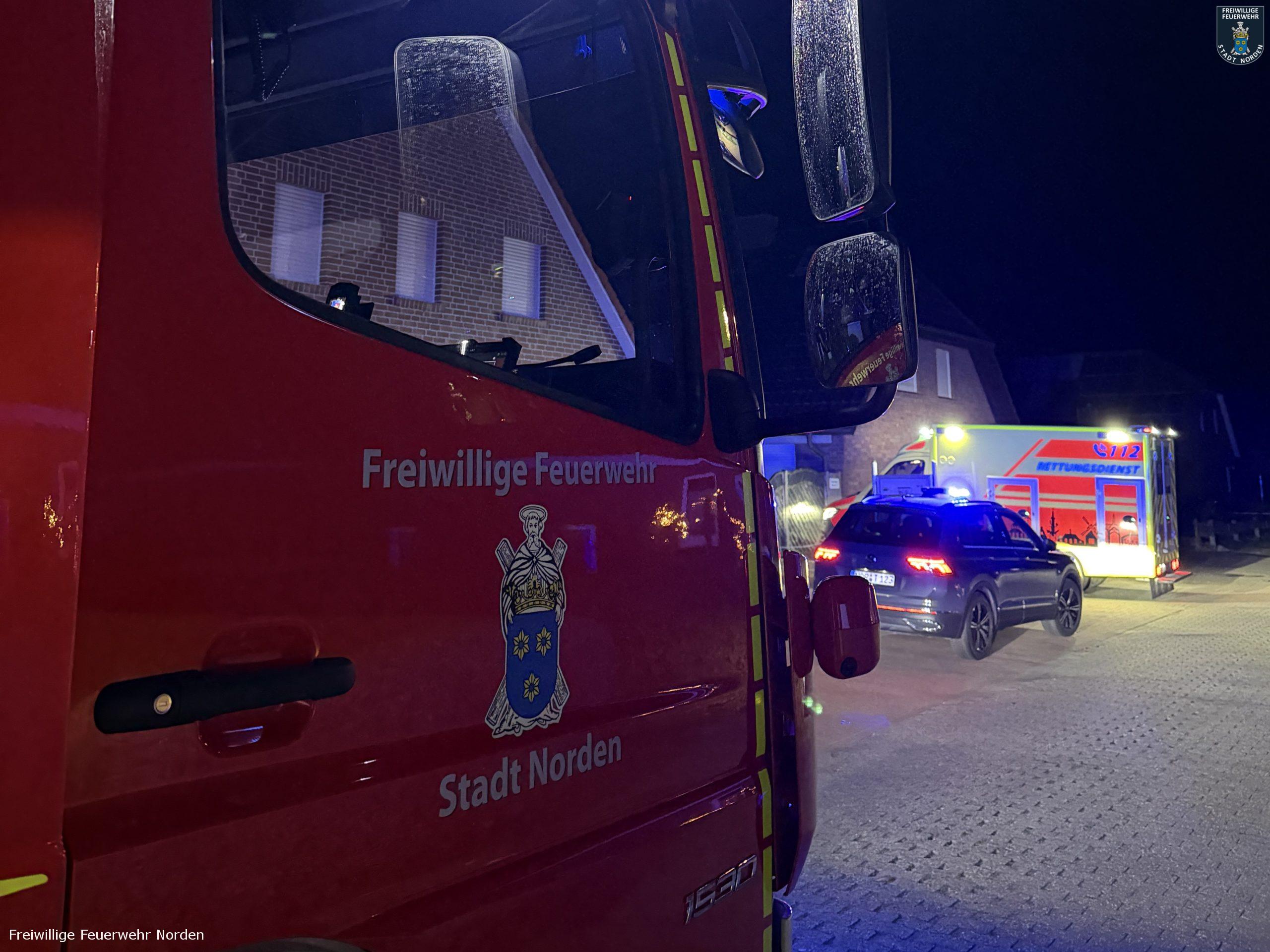 Ein Mann hat am frühen Morgen des ersten Weihnachtsfeiertags in Norddeich einen medizinischen Notfall erlitten. In seinem Notruf gab der Alleinlebende an, dass er sich im Obergeschoss seiner Wohnung befinden würde und es aus eigener Kraft nicht bis an die die Haustür schafft. Die Leitstelle Ostfriesland entsandte darauf gegen 5.30 Uhr nicht nur den Rettungsdienst sondern, auch die Freiwillige Feuerwehr Norden zur Notfalltüröffnung. Die Feuerwehrleute konnten schnell Zugang zu dem Patienten schaffen. Nach einer ersten medizinischen Versorgung durch den Rettungsdienst, halfen die Feuerwehrleute noch den Patienten in einem Tragetuch durch das enge Treppenhaus zu tragen. Anschließend kam der Mann mit einem Rettungswagen in ein Krankenhaus.