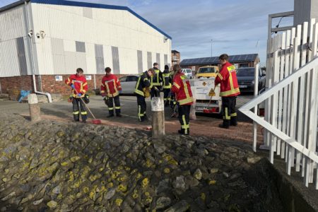 Im Norddeicher Osthafen ist am Sonnabendvormittag Benzin ausgelaufen und ins Hafenbecken gelangt. Der Kraftstoff trat aus einer mobilen Tankanlage auf einem Anhänger aus und lief über die Oberflächenentwässerung in den Hafen. Der Verursacher schätzte die ausgelaufene Menge auf bis zu 70 Liter. Er benachrichtigte die Freiwillige Feuerwehr Norden, die sich mit Ölsperren und Bindemittel um die ausgelaufene Flüssigkeit kümmerte. Die Einsatzkräfte erreichte die Alarmierung während der diesjährigen Weihnachtsbaumsammelaktion. Das Fahrzeug am Sammelpunkt im Ortsteil Bargebur rückte daraufhin von dort ab.