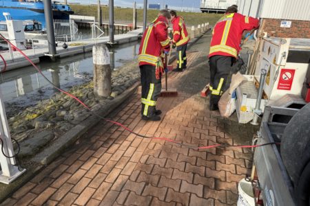 Wind und Tide begünstigten die Bekämpfung, im dem sie das Benzin in eine Ecke des Osthafens sowie zwischen einem Offshore-Schiffe und einer Spundwand sammelten. Nach rund einer Stunde hatte die Feuerwehr ihre Maßnahmen abgeschlossen. Die Ölsperren werden am Montag von einer Entsorgungsfirma geborgen und entsorgt. Neben der Feuerwehr waren Behördenvertreter vom NLWKN, der Wasserschutzpolizei und NPorts vor Ort.