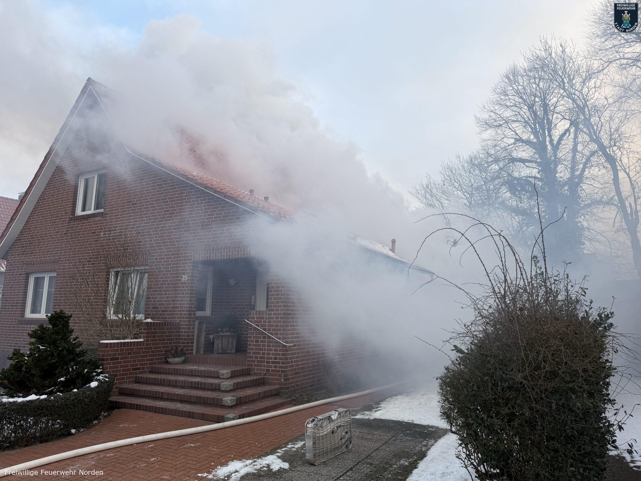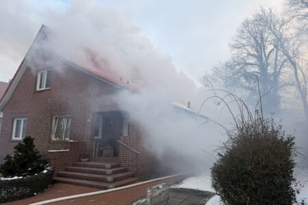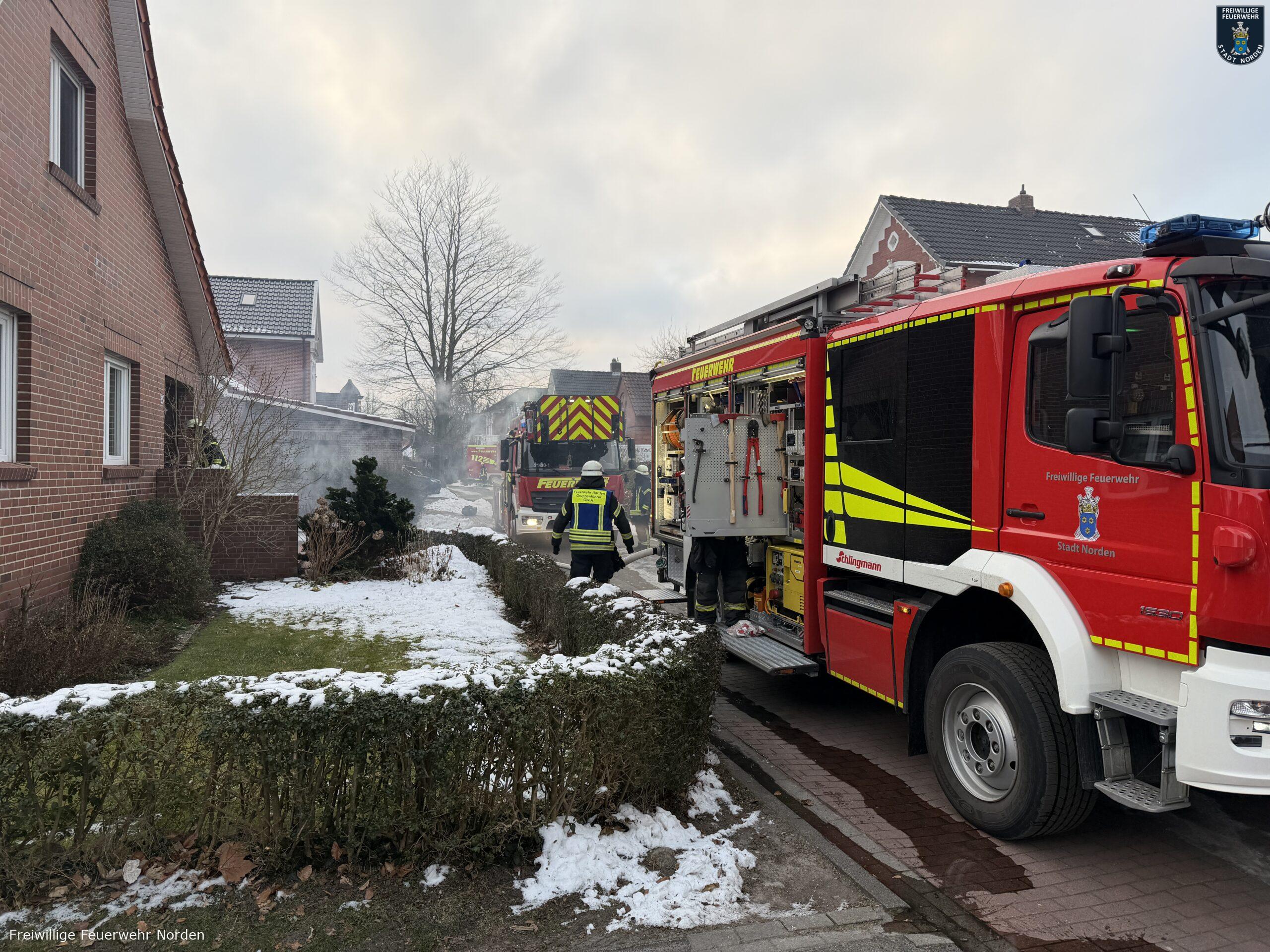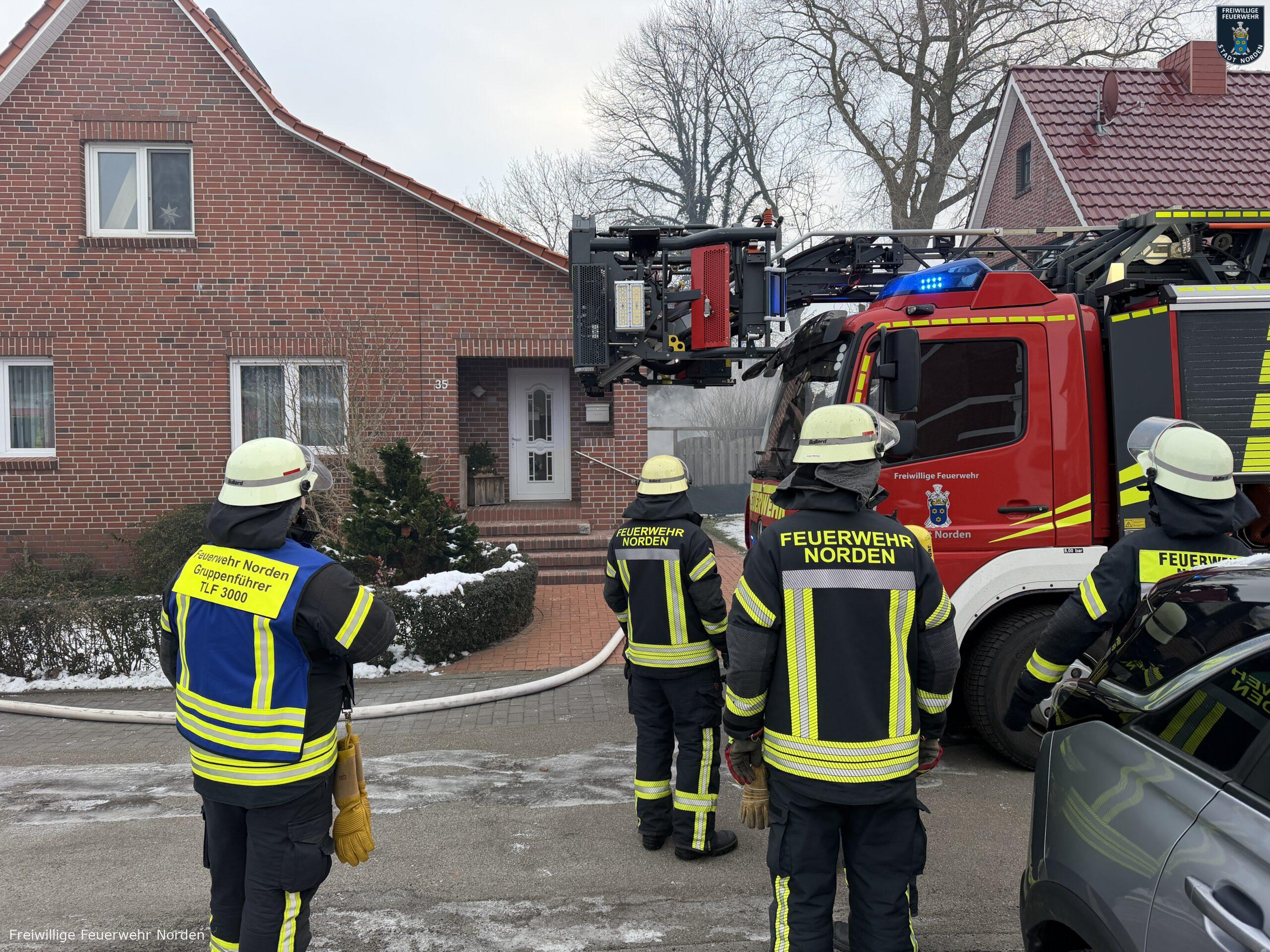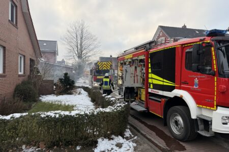 Im Zentrum von Norden hat am Dienstagvormittag ein Gartenhaus gebrannt. Gegen 9 Uhr ging der erste Notruf aus der Bleicherslohne bei der Leitstelle Ostfriesland ein. Ein zirka drei mal drei Meter großer Holzschuppen stand dort in Vollbrand. Die Flammen bedrohten ein nahestehendes Einfamilienhaus. Bei Ankunft der Freiwilligen Feuerwehr Norden waren bereits die Scheiben von einem daran angebauten Wintergarten durch die Hitze geplatzt.