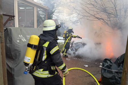 Ein Hydrant war ebenfalls eingefroren. Hier half eine Nachbarin mit heißem Wasser aus einem Wasserkocher beim Auftauen. Nach rund einer Stunde war der Feuerwehreinsatz beendet. Von dem Schuppen blieben nur verkohlte Reste übrig. An dem Wintergarten entstand erheblicher Schaden. Die Polizei nahm die Ermittlungen zur Brandursache auf. Für Rettungsdienst und Deutsches Rotes Kreuz blieb es bei ihrer Bereitstellung.