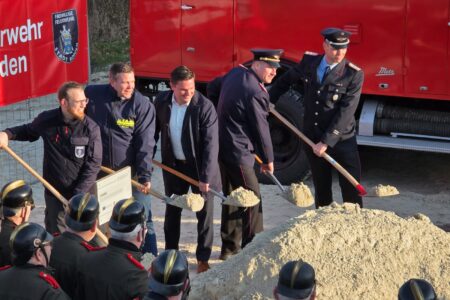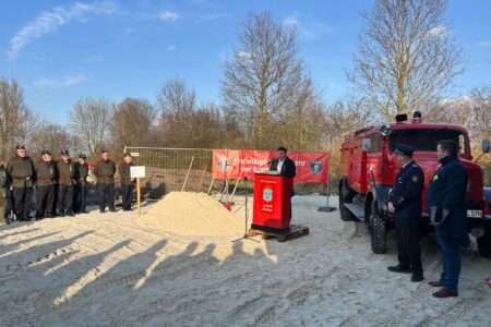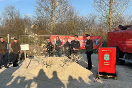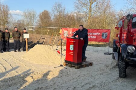 Am Sonntagnachmittag wurden symbolisch für zwei Projekte der Freiwilligen Feuerwehr Norden am Hilfeleistungszentrum der erste Spatenstich gesetzt: