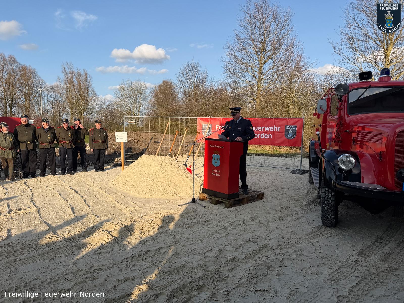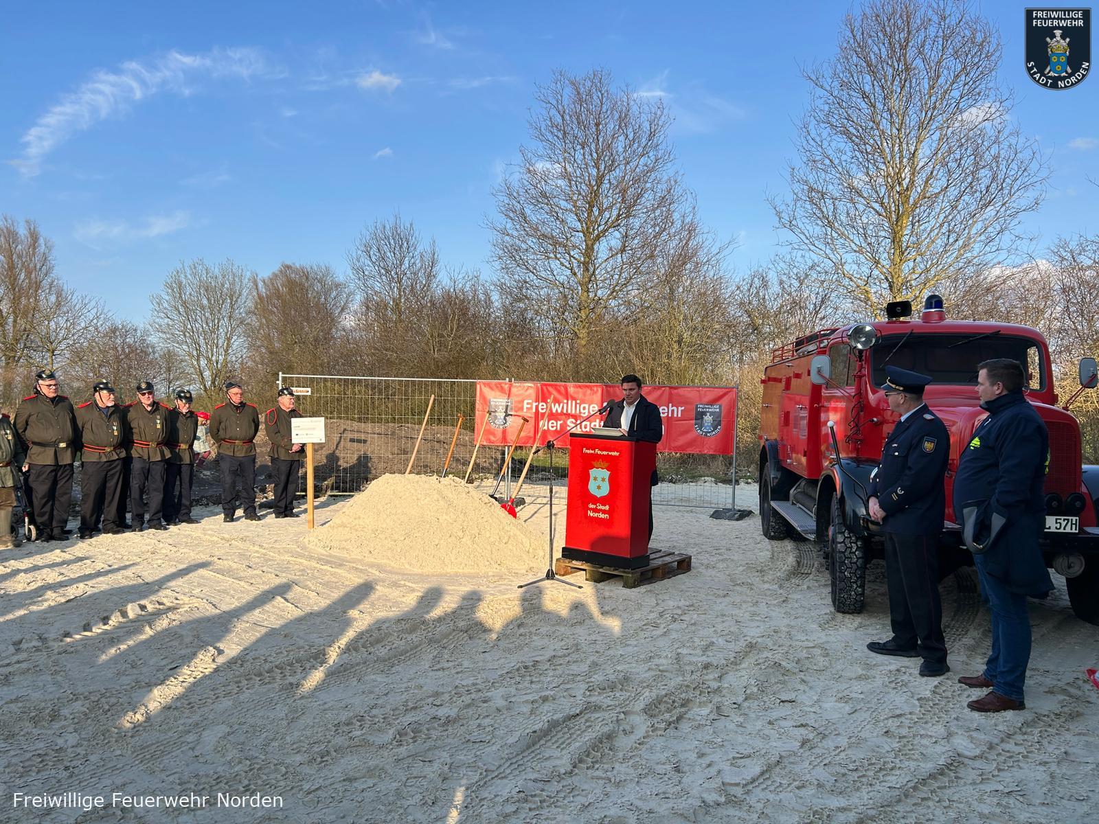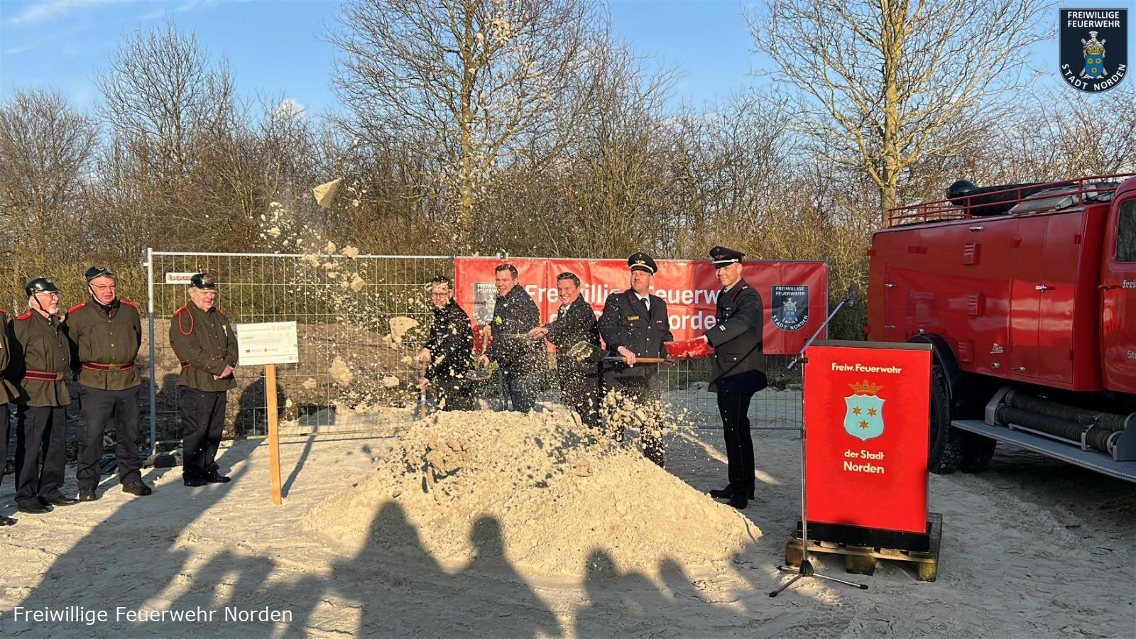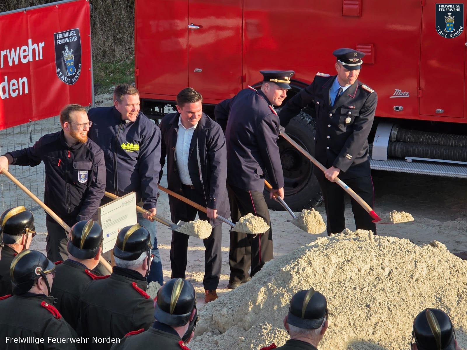 Am Sonntagnachmittag wurden symbolisch für zwei Projekte der Freiwilligen Feuerwehr Norden am Hilfeleistungszentrum der erste Spatenstich gesetzt: