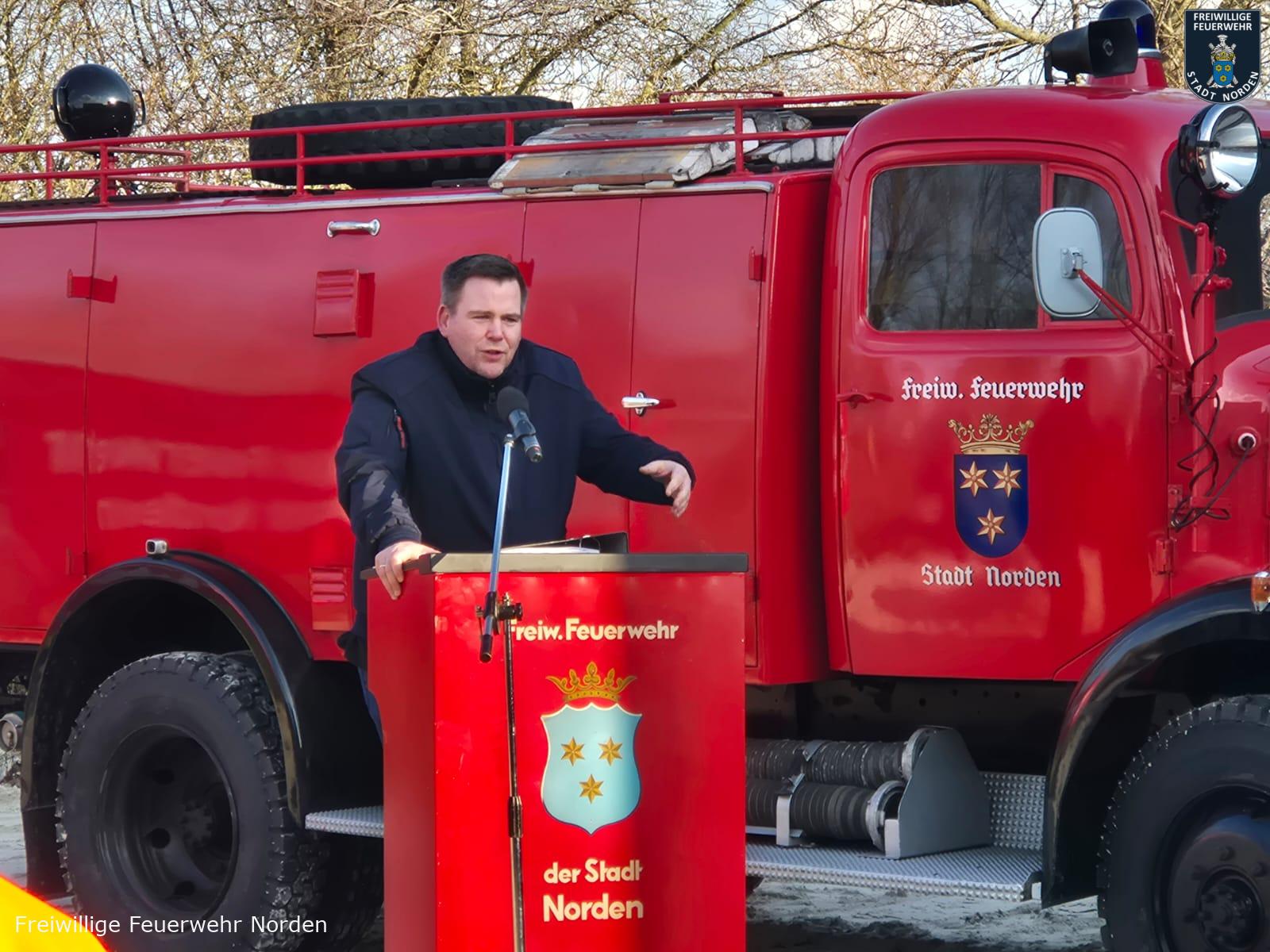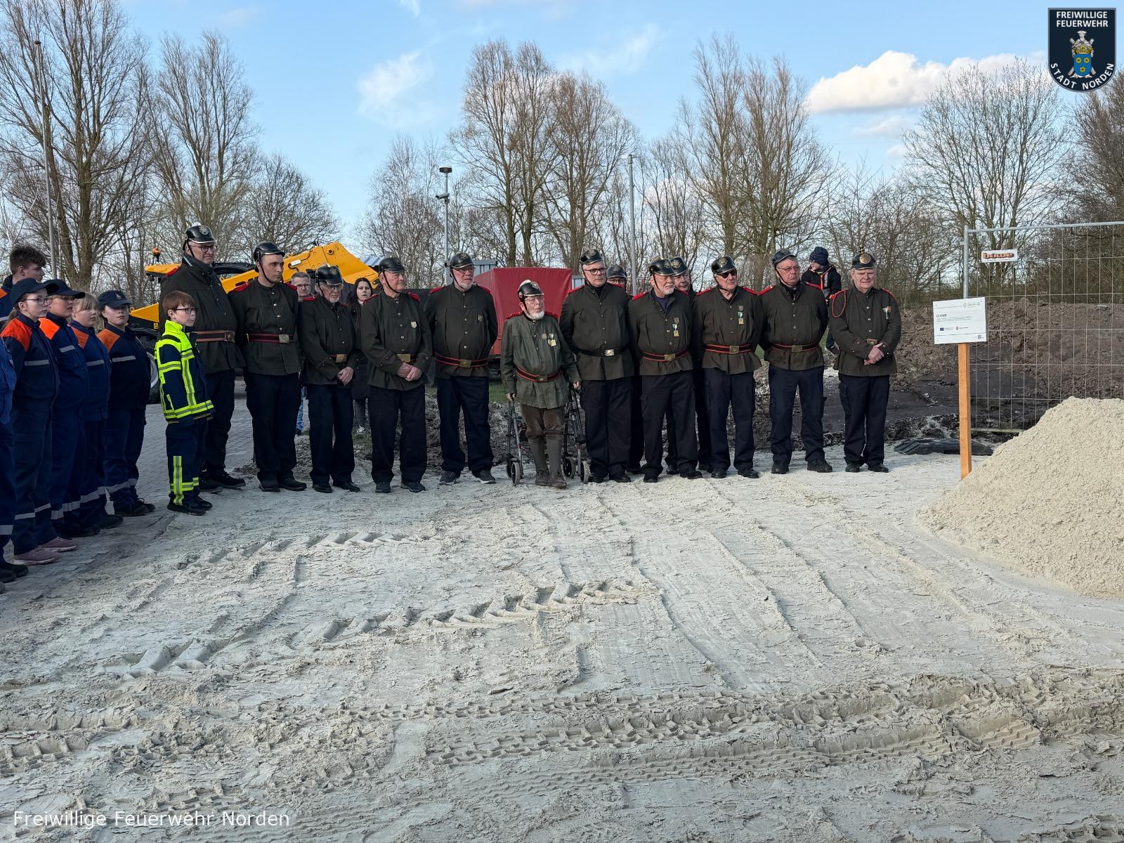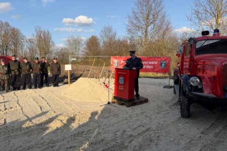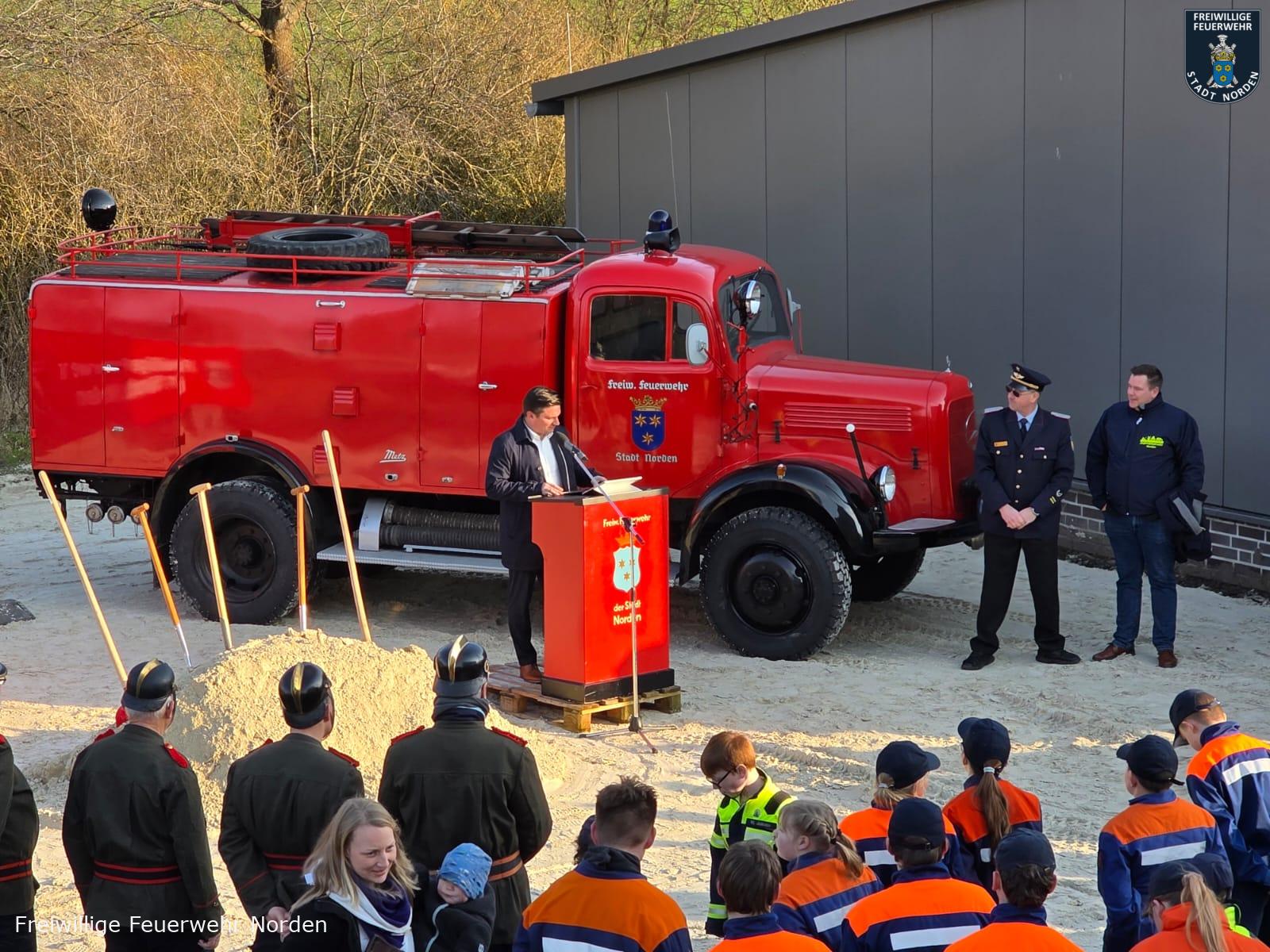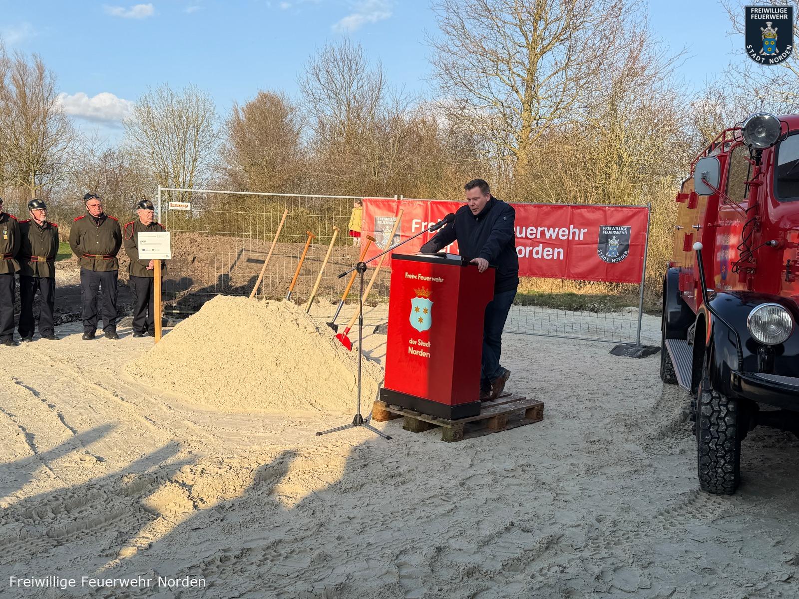 Am Sonntagnachmittag wurden symbolisch für zwei Projekte der Freiwilligen Feuerwehr Norden am Hilfeleistungszentrum der erste Spatenstich gesetzt: