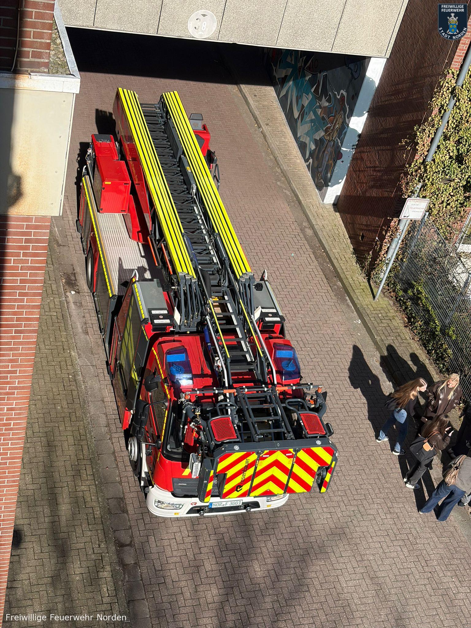Am Mittwochvormittag meldete die automatische Brandmeldeanlage der Conerus-Schule an der Schulstraße ein Feuer. Die Einsatzkräfte der Freiwilligen Feuerwehr Norden konnten in einem Nachbargebäude einen Rauchmelder lokalisieren, der durch Handwerkerarbeiten ausgelöst wurde. Nach Rückstellung der Anlage konnte der Einsatz beendet werden. Die Schule war wie immer bei solchen Einsätzen beim Eintreffen der Feuerwehr vorbildlich geräumt.