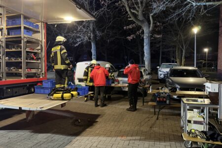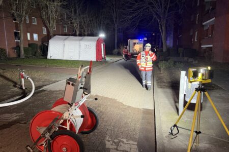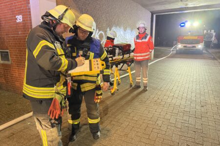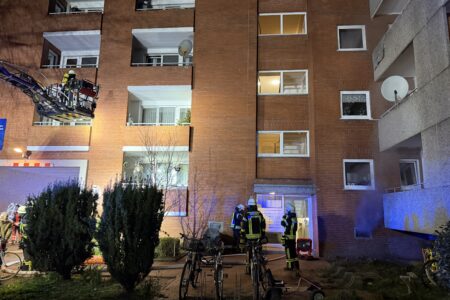 In Norden ist es am Sonntagabend in einem Mehrparteienhaus in der Kirchstraße zu einem Kellerbrand gekommen. Gegen 19.30 Uhr wurde von Anwohnern per Notruf Rauch gemeldet, der aus einem Kellerfenster drang. Die alarmierte Freiwillige Feuerwehr Norden konnte dies vor Ort bestätigen. Der Rauch breitete sich zudem im Keller und im Treppenhaus aus. Als erstes verschloss die Feuerwehr den Keller mit einem Rauchvorhang und begann das Treppenhaus mit einem Hochleistungslüfter zu entrauchen. Schnell war der Fluchtweg damit für die über 20 Hausbewohner wieder hergestellt. Feuerwehr und Polizei begannen dann sofort alle 15 Wohneinheiten zu evakuieren. Mit Hilfe der Einsatzkräfte wurden 15 Hausbewohner, darunter auch mehrere Kinder in Sicherheit gebracht. Sechs Bewohner flüchteten eigenständig.