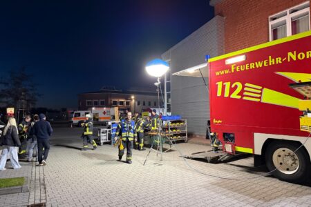 Die traditionelle Frühjahrsübung aller vier Züge der Freiwilligen Feuerwehr Norden fand am Dienstagabend bei der Fa. Atlantique Packaging Norden an der Stellmacherstraße statt. Ausgearbeitet wurde die Übung von den Kameraden Karsten Eilers, Thomas Weege und Uwe Bents.