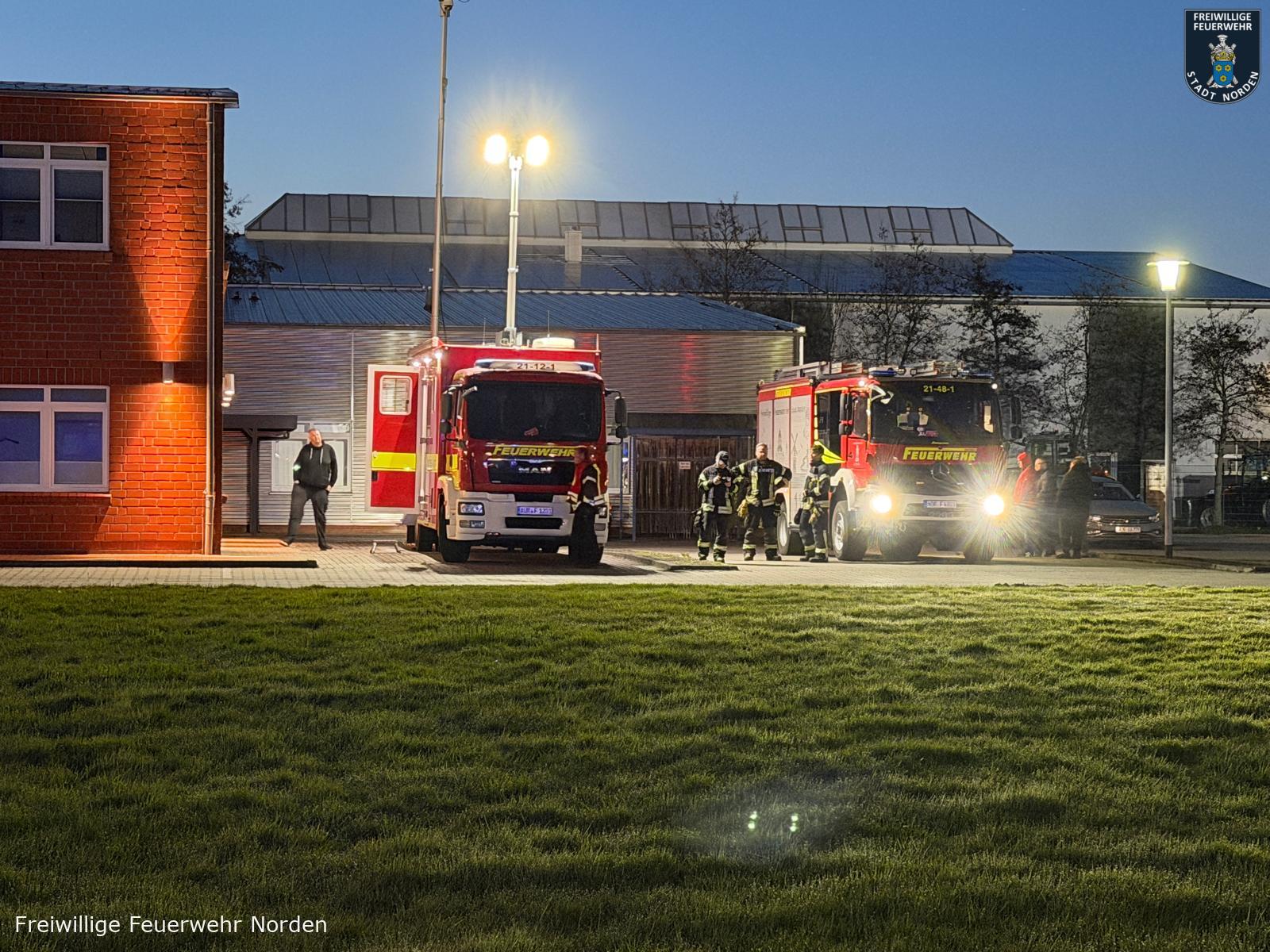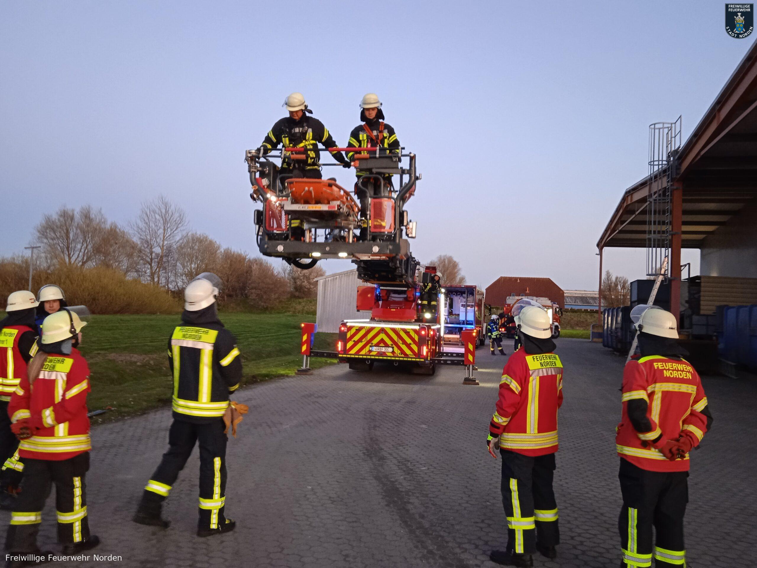 Die traditionelle Frühjahrsübung aller vier Züge der Freiwilligen Feuerwehr Norden fand am Dienstagabend bei der Fa. Atlantique Packaging Norden an der Stellmacherstraße statt. Ausgearbeitet wurde die Übung von den Kameraden Karsten Eilers, Thomas Weege und Uwe Bents.