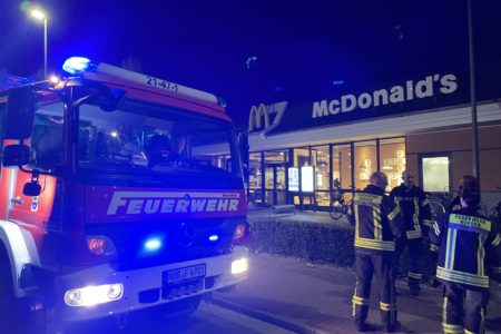 Die Freiwillige Feuerwehr Norden war in der Nacht zu Freitag in einem Fastfood-Restaurant in der Gewerbestraße im Einsatz. Mitarbeiter des Schnellrestaurants hatten dort während Reinigungsarbeiten einen Defekt an einer Getränkemischanlage festgestellt. Aus dem Gerät trat Wasser und leichter Nebel aus. Weiterhin war an einem dazugehörigen CO2-Druckspeicher, deutlicher Eisansatz zu erkennen. Die Feuerwehrleute konnten daher zunächst mehr