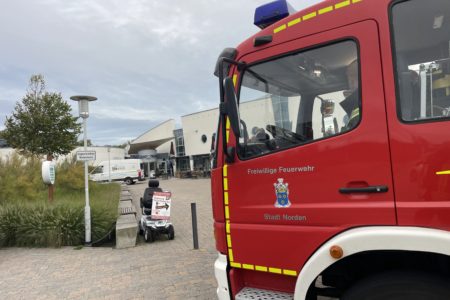 Rettungsdienst und Feuerwehr sind am Montagnachmittag in Norden in den Schafweg ausgerückt, um einer in ihrer Wohnung gestürzten Frau zu helfen. Eine Nachbarin hatte die Hilferufe der Frau gehört und einen Notruf abgesetzt. Als die Einsatzkräfte eintrafen, hatte die Gestürzte es dann doch geschafft ihre Wohnungstür zu öffnen. Verletzt hatte sie sich auch nicht. Somit mehr